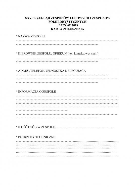 Zapraszamy do zgłoszenia swojego udziału wszytskie zespoły folkowe i ludowe. Ostateczny termin zgłoszeń upływa 30 maja 2018 r.