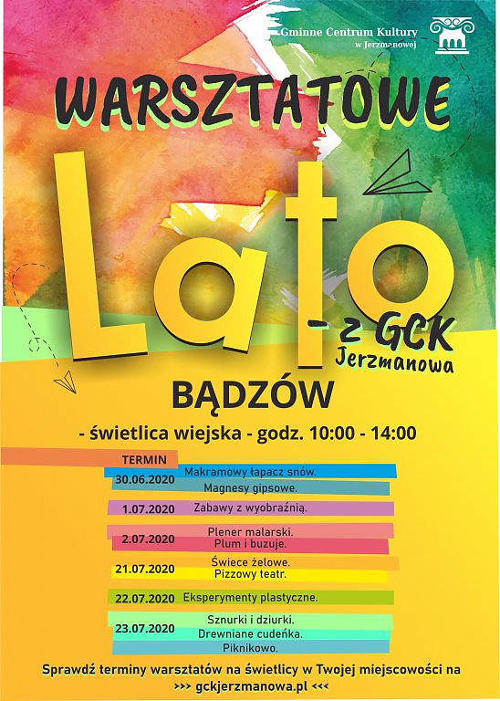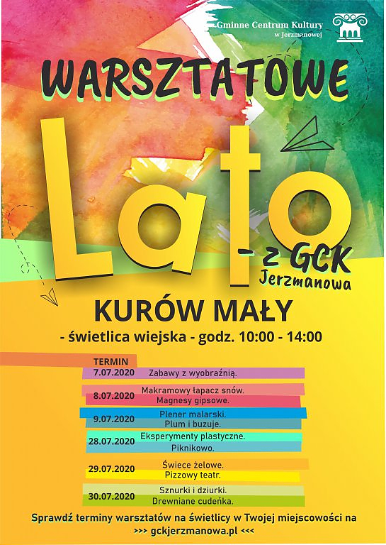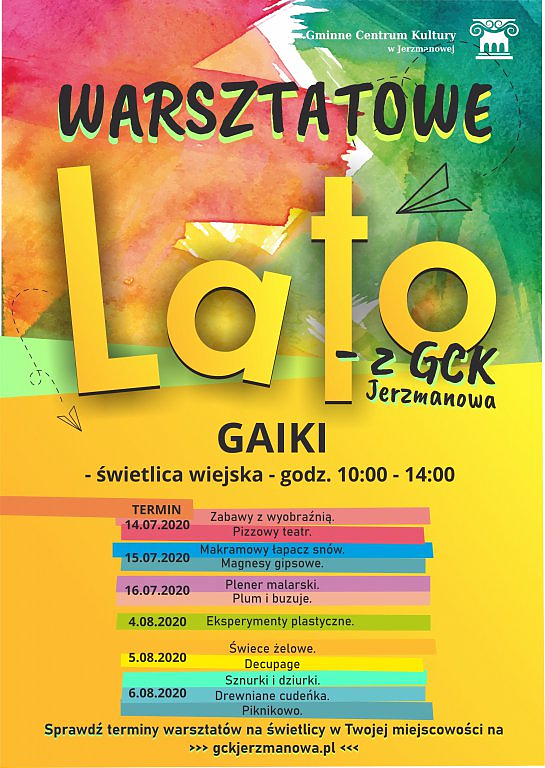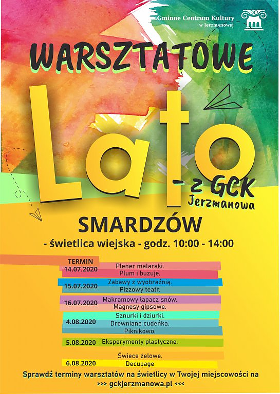Serdecznie zapraszamy na „Warsztatowe LATO” z Gminnym Centrum Kultury w Jerzmanowej.