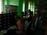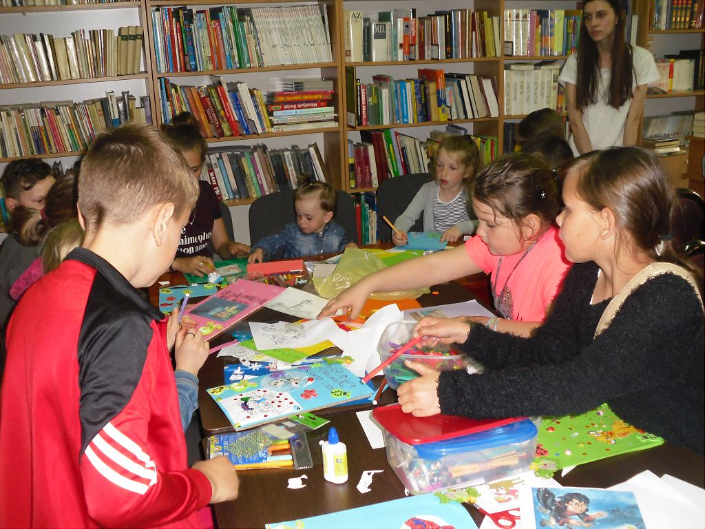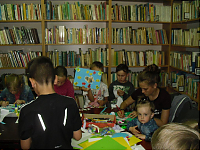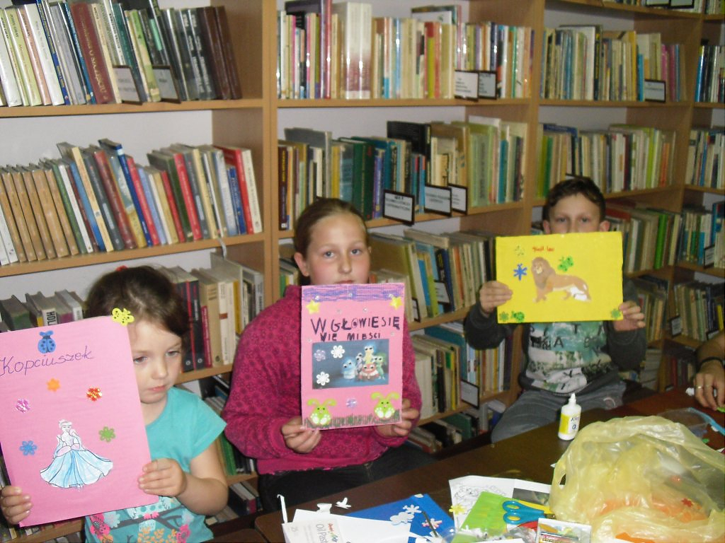[więcej...]Biblioteka inspiruje - to hasło tegorocznego Tygodnia Bibliotek. W związku z tym dzieci uczestniczące na zajęcia plastyczne do WDK odwiedziły Bibliotekę w Jaczowie. Tematem zajęć było zaprojektowanie okładki do swojej ulubionej książki. Jako,że dziecięca wyobraźnia nie zna granic, dzieci stworzyły różnorodne, piękne i bogato zdobione okładki. Wśród wybranych bajek znalazły się m.in. : Król Lew, Kopciuszek, Kubuś Puchatek i wiele innych.