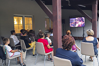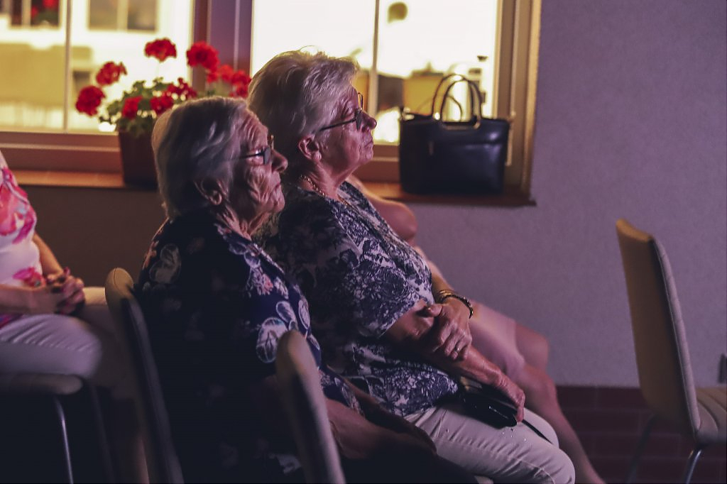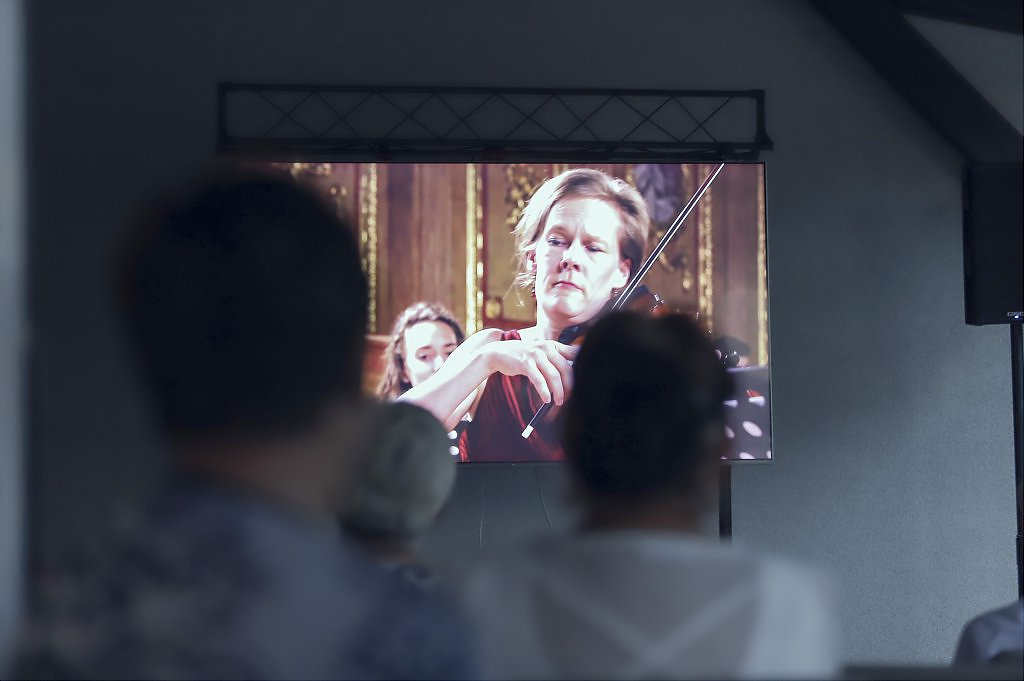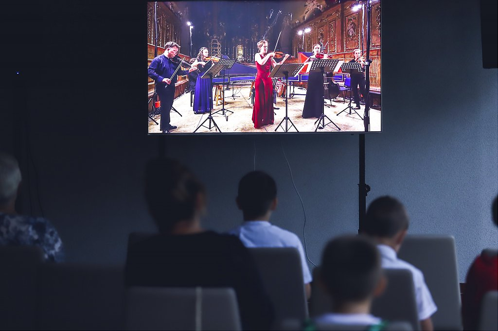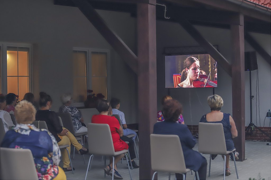 Piękne i hipnotyzujące dźwięki muzyki dawnej rozbrzmiewały z głośników na tarasie świetlicy wprowadzając przybyłych gości w anielski nastrój, o czym mówili już po projekcji. Dodatkowo serwowano pyszne ciasto, kawę i napoje. Takie wieczory z muzyka klasyczną to idealne chwile dla relaksu i odprężenia po całodziennych obowiązkach.