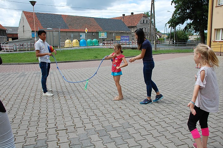 Studenci uczestniczyli w pierwszej edycji półkolonii tj. organizowanych w Jaczowie. Z naszą gminą połączył ich projekt International Summer Semi – Caps realizowany przez Komitet Lokalny AIESEC we Wrocławiu. To właśnie dzięki współpracy Komitetu z GCK młodzi ludzie przyjechali do nas by poprzez zabawę, gry, naukę tańca promować kulturę własnego kraju. W czasie 5 – dniowego programu (0d 04.07 – 07.07.2016r.) poświęcali swój czas na prezentację kultury meksykańskiej, serbskiej oraz Hong Kongu. Porozumiewali się w języku angielskim, co nie stanowiło żadnej bariery dla polskich dzieci; doskonale się rozumieli i porozumiewali. Studentów przyjęły z ogromnym entuzjazmem.