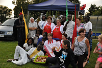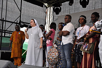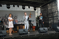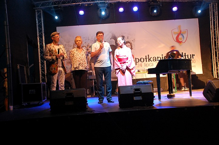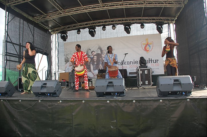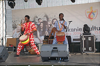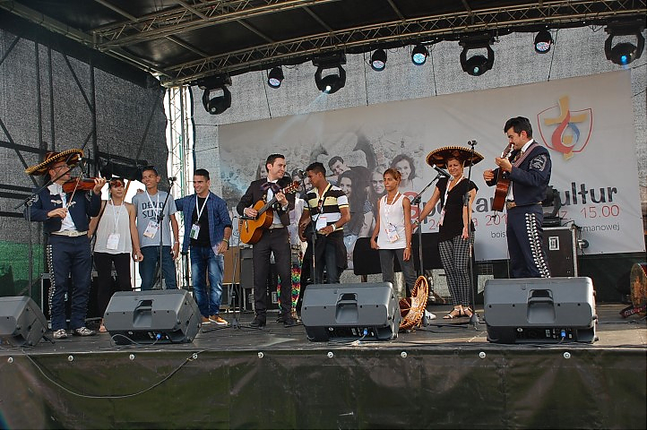 Po zakończonym turnieju wsi impreza przeniosła się na scenę, na której prym wodził Jarek Sobański z Kabaretu „Zachodniego” Podróż po mapie kultur rozpoczął Zespół GASPARD’A CONDE. Muzyka afrykańskich bębniarzy oraz ekspresyjny taniec oczarowały publiczność. Kolejny występ tym razem z kontynentu północnoamerykańskiego zaprezentował Zespół MARIACHI LOS AMIGOS, tworzony przez rodowitych Meksykanów. Znane latynoamerykańskie szlagiery wzbudziły zainteresowanie publiczności. Jedni śpiewali, inni zaś tańczyli naśladując kroki naszych kolejnych gości – pielgrzymów z Kuby.