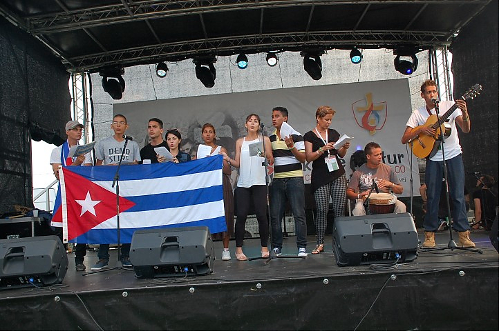 Tak, właśnie dla Kubańczyków, którzy przyjechali do jednej z lubuskich parafii Jerzmanowa stała się miejscem niedzielnego odpoczynku. Mając więc tak wspaniałych gości – pielgrzymów nie mogło ich zabraknąć na scenie. Pewnie jeszcze długo wspominać będziemy senegalski śpiew oraz pantomimę w wykonaniu Kubańczyków. Na scenie opowiedzieli o swoich kulturach oraz wspólnie zaśpiewali hymn ŚDM w łączonej wersji polsko – hiszpańsko – francuskiej.