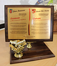 w czasach niepokoju na świecie potrzebni są tacy właśnie solidni i szanujący siebie nawzajem partnerzy. Podkreślił, że gmina Jerzmanowa to jedyna w powiecie głogowskim gmina, która podjęła współpracę zagraniczną. Jest to dla niego cenne i napawa go dumą. Wręczona przez wójta statuetka
