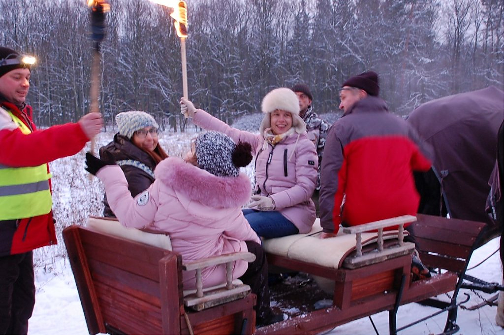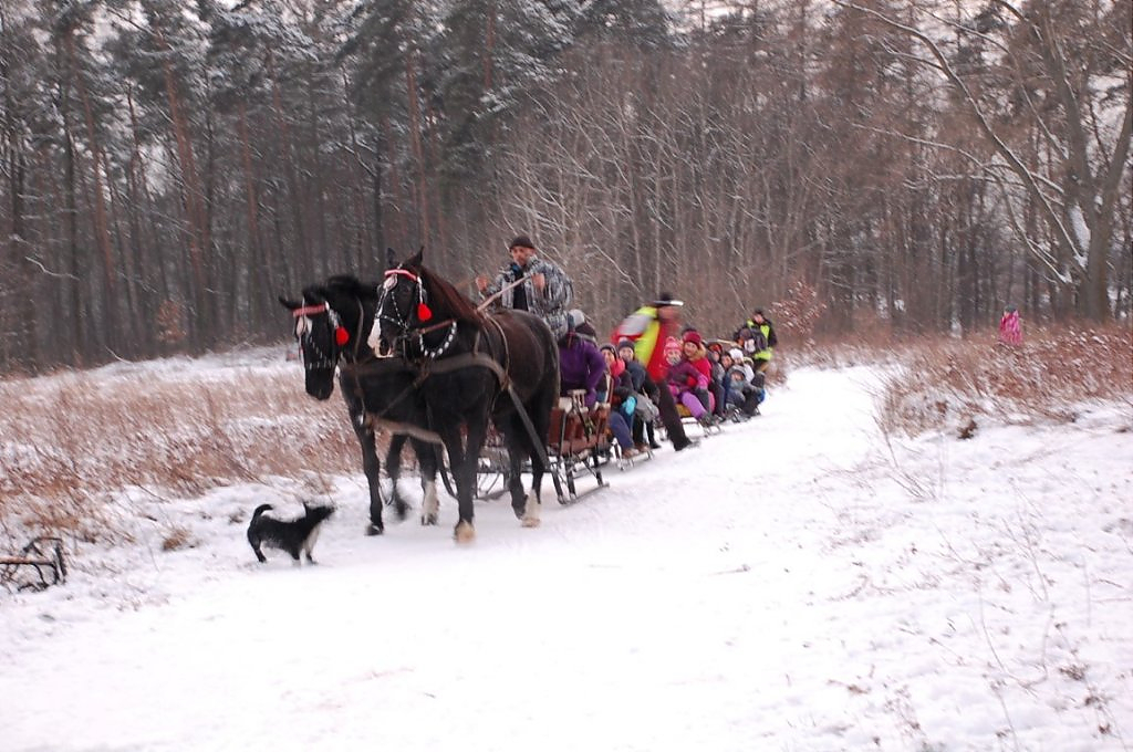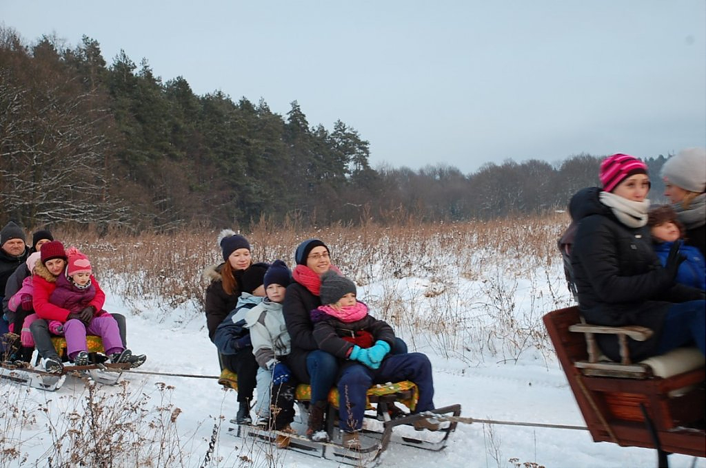[więcej...]Piątkowy kulig (20.01) był świetną frajdą dla dzieci i dorosłych, którzy skorzystali z zaproszenia GCK. Niezapomniane wrażenia dostarczył oczywiście przejazd saniami w końskim zaprzęgu. Towarzyszyły mu zimowa aura, malowniczy las, dzwoneczki sań, radosne okrzyki uczestników kuligu, a także pochodnie, które oświetlały drogę podczas szarówki. Po zakończonej sannie każdy mógł ogrzać się przy ognisku i poczęstować gorącą herbatą. Zimową przygodę dopełniły pieczone na ognisku kiełbaski, które wyjątkowo smakowały na mrozie.