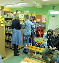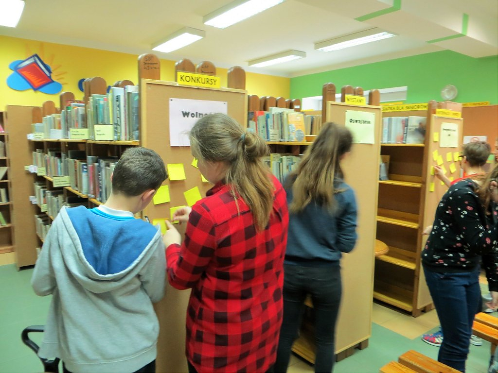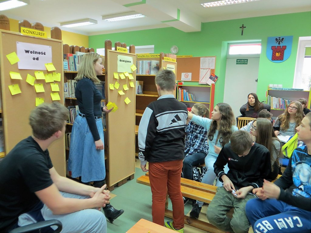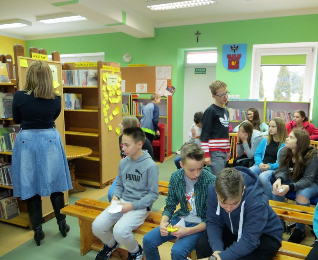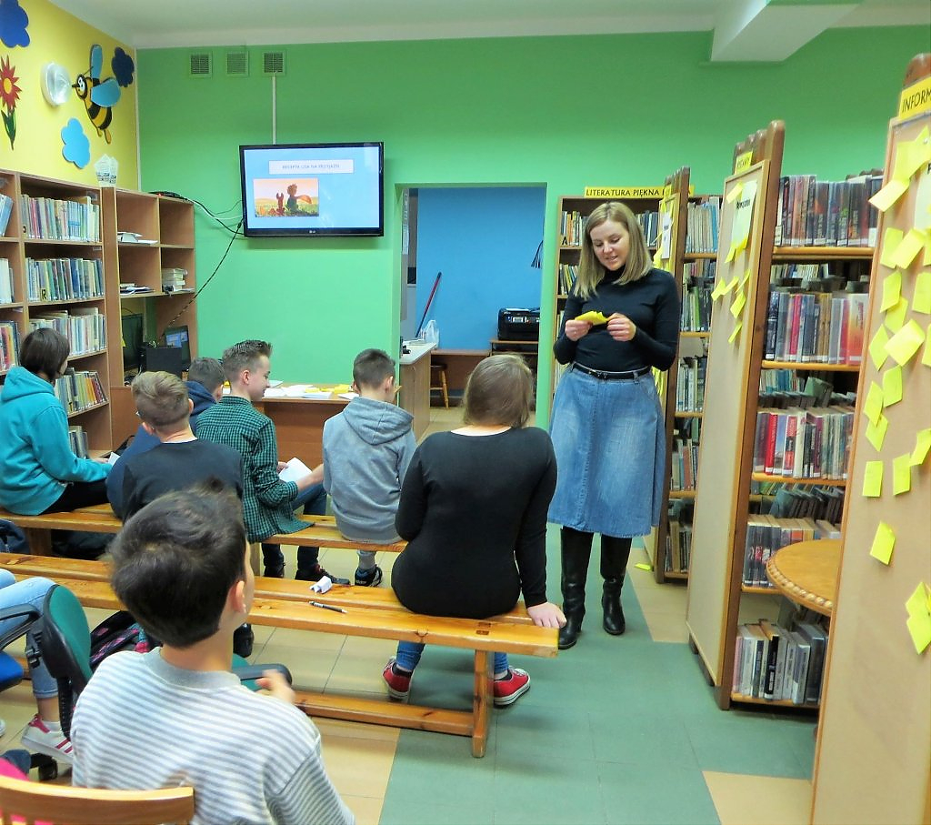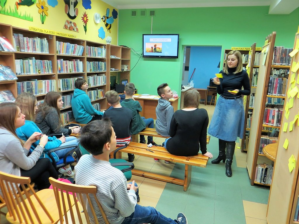 [więcej...]Podróż do krainy Bajkofilozofii nadal trwa. W każdą środę w ramach warsztatów z elementami biblioterapii młodzież z Gimnazjum w Jerzmanowej mierzy się z etycznymi i filozoficznymi zagadnieniami jakie przygotowuje dla nich bibliotekarz. Za nami zajęcia traktujące o trudnej sztuce bliskości z drugim człowiekiem. Fragment książki „Mały książę” A. De Saint-Exupery posłużył nam jako punkt wyjścia do rozmowy o przyjaźni. Młodzież jak zawsze musiała rozwiązać szereg zadań i wykonać kilka ćwiczeń. Najbardziej wymagające okazało się definiowanie pojęcia „oswoić” jaki rozwiązanie testu na „dobrego” przyjaciela. Bajka filozoficzna pt. Jeżozwierze uświadomiła nam, że w relacjach z innymi należy zachować „właściwą odległość”. Młodzież wykorzystując metodę burzy mózgów starała się udowodnić, że człowiek potrzebuje innych ludzi, ale jednocześnie oczekuje niezależności. Temat złożonych relacji międzyludzkich bardzo zaabsorbował młodzież. Zajęciom towarzyszyło sporo ruchu, dyskusja, słuchowisko oraz muzyka. Już teraz zapraszamy do przeczytania relacji z kolejnych warsztatów z elementami biblioterapii.