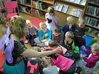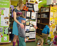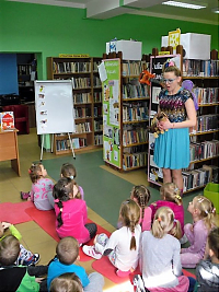 [więcej...]W minionym tygodniu ( 17.03.2017) Biblioteka w Jerzmanowej gościła grupy dwie grupy dzieci uczęszczające do Gminnego Przedszkola w Jerzmanowej "Kraina Marzeń". Wspólnie z najmłodszymi czytelnikami wybraliśmy się w podróż do świata dziecięcej poezji. Dzieci nie tylko wysłuchały wierszy znanych i lubianych autorów ale i wzięły udział w zabawach inspirowanych tekstami popularnych wierszy: "Lokomotywa", "Jamniczek", "Przedszkola orkiestra". Dzieci doceniły odmieniony wystrój biblioteki i wystawę przygotowaną z okazji zajęć. Na temat poezji z młodymi czytelnikami rozmawiała bibliotekarka przebrana na tą szczególną okazję za natchnienie towarzyszące artystą. Uczestnicy popisali się ogromną wiedzą dotyczącą wierszy i ich autorów (większość utworów recytowały wraz z prowadzącą) i nienagannymi manierami. Wierszyki są doskonałym materiałem do czytania dla dzieci. Głośne czytanie wierszyków i bajek to nie tylko mile spędzony z dzieckiem czas, ale także rozwijanie wyobraźni, wzbogacanie słownictwa, oswajanie trudnych tematów. Czytanie dziecku wierszyków pomaga budować silną więź pomiędzy dorosłym a maluchem. Dziękujemy przedszkolakom za odwiedziny i mile spędzony czas, a nauczycielom i opiekunom za pomoc w kształtowaniu zainteresowań czytelniczych wśród najmłodszych.