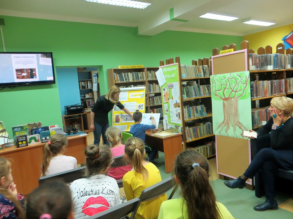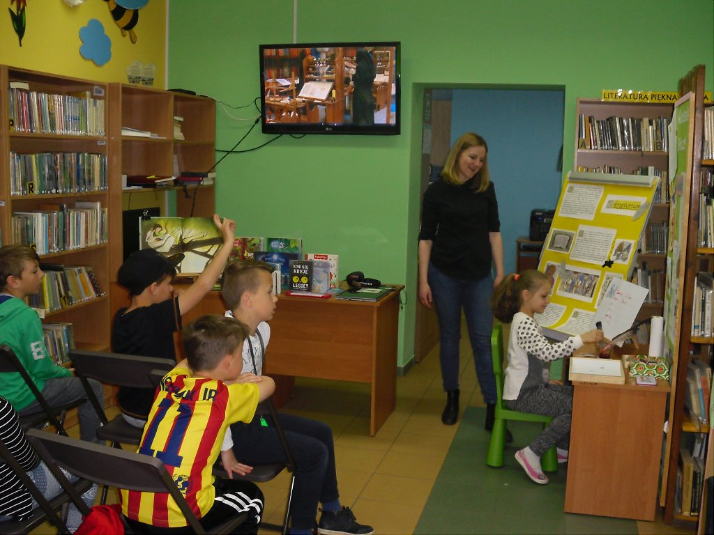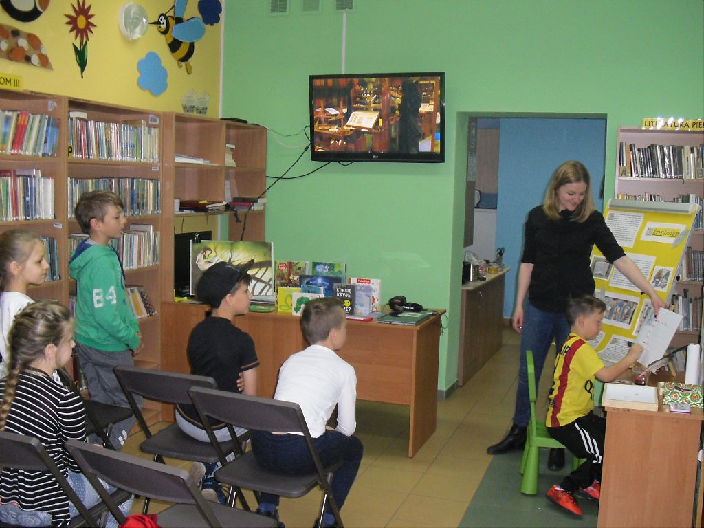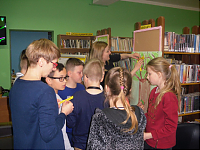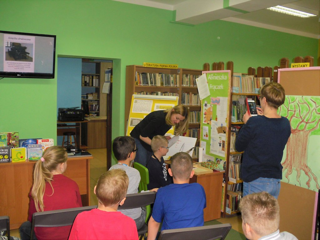 [więcej...]Literatura pomaga rozwijać język, wzbogaca słownictwo, uczy precyzyjnie wyrażać myśli, pobudza fantazje, pomaga zrozumieć innych i otaczający nas świat. A biegłość w czytaniu i nawyk sięgania po książki czynią młodego człowieka zdolnym do dalszej nauki. Ale czytanie trzeba polubić. Zachęcaliśmy do tego uczniów klas III ( ponad 30 osób ) Szkoły Podstawowej im. Jana Pawła II w Jerzmanowej. Dzieci wzięły udział w lekcji bibliotecznej, której tematem przewodnim była książka – jej historia, obecna forma, powstawanie. Uczestnicy dobrze się bawili, wykonując pracę średniowiecznego skryby, drukarza, ilustratora. Uczestnikom podobał się również przegląd publikacji dedykowanych dla różnych grup wiekowych – od niemowlaków do nastolatków oraz nowoczesnych form książki: audiobooków, ebooków. Mamy nadzieję, że dzieciom zajęcia zapadną w pamięć i skłonią do sięgnięcia po książę
