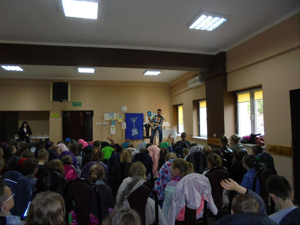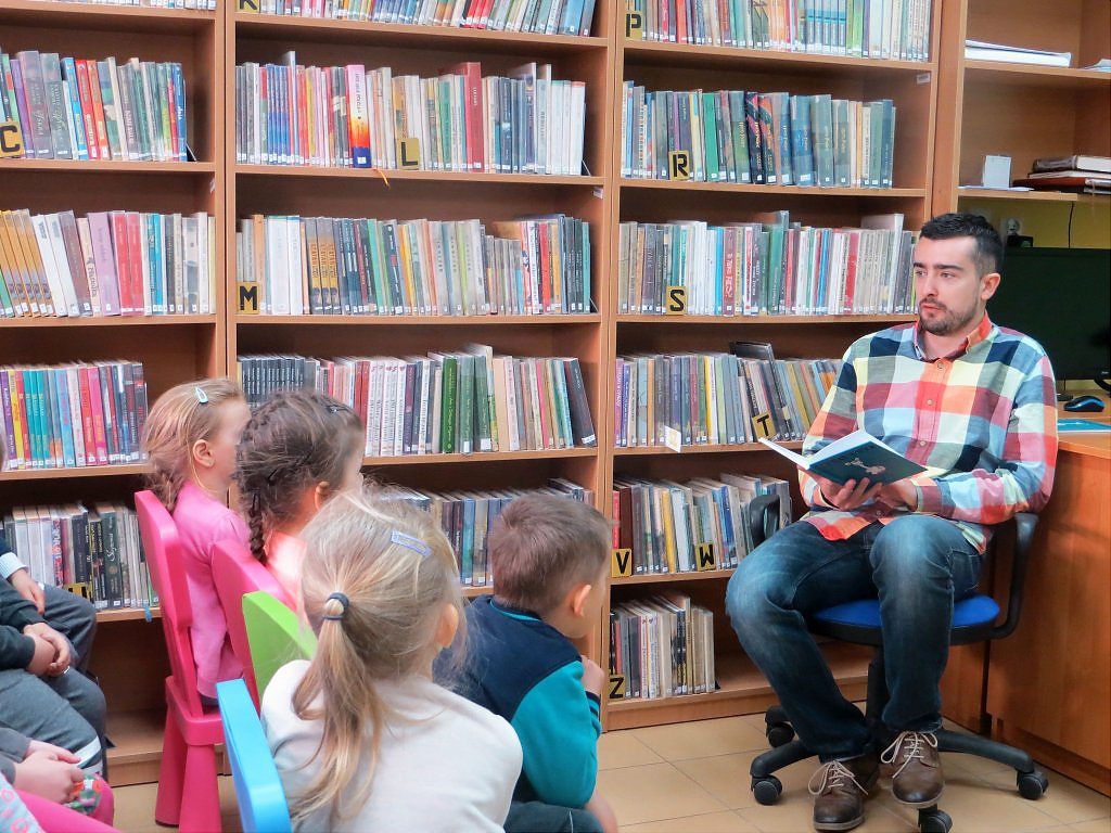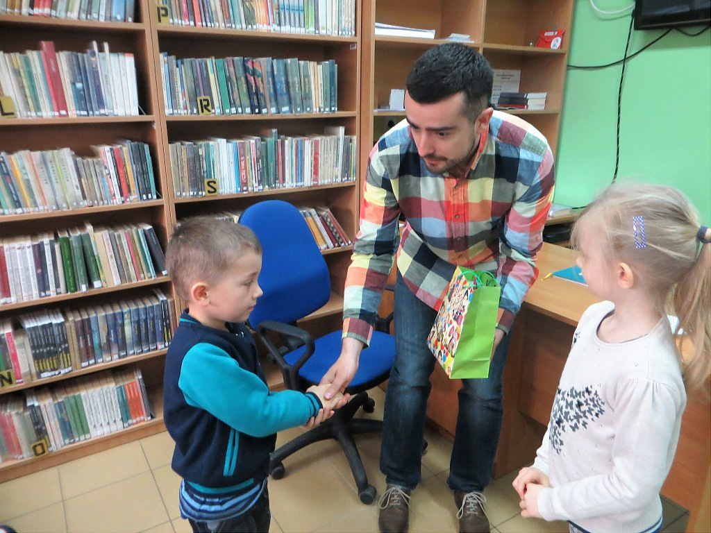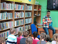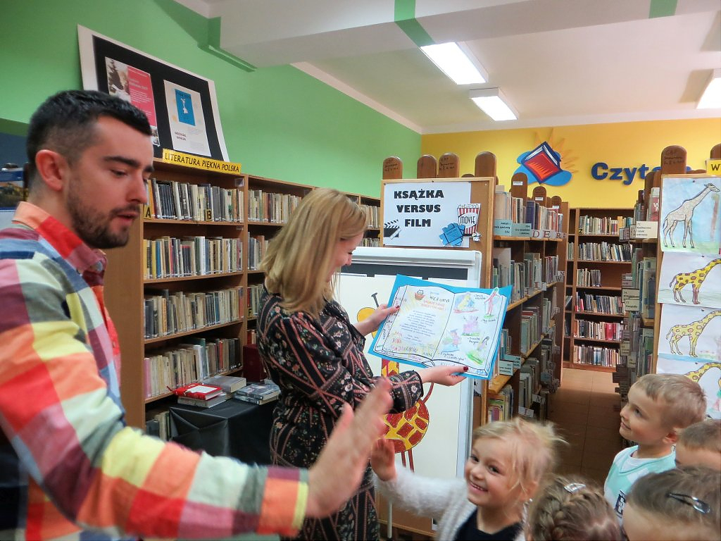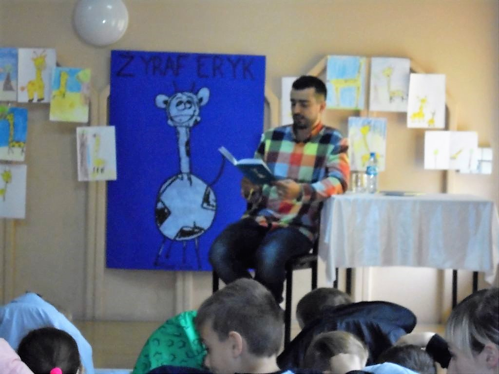 [więcej...]Spotkania autorskie, czyli możliwość bezpośredniego kontaktu z pisarzem, rozmowa autora z czytelnikiem to najlepsza promocja czytelnictwa. W związku z Tygodniem Bibliotek gościem naszych bibliotek był Pan Michał Wnuk - autor książki dla najmłodszych "Żyraf Eryk". Na spotkanie z autorem zaprosiliśmy szczególnie drogich nam czytelników: grypę przedszkolaków z gminnego przedszkola "Kraina marzeń". Pan Michał w przystępny i bardzo interesujący sposób opowiedział dzieciom jak rozpoczęła się jego przygoda z pisaniem. Okazało się, że prawdziwą inspiracją do napisania zabawnych przygód "Żyrafa Eryka" była wiadomość o tym, że wkrótce rodzina pisarza się powiększy. Uśmiech na twarzy młodych czytelników pojawił także wtedy kiedy autor książki opowiadał o autentycznych pierwowzorach zabawnych bohaterów książki. Pan Michał przeczytał kilka fragmentów swojej książki rozbudzając ciekawość i wywołując gromki śmiech. Spotkania zakończyło się miłym akcentem ze strony przedszkolaków. Dzieci przygotowały nie tylko wspaniałe rysunki ryżraf, które można obecnie podziwiać w bibliotece ale także podarowały bibliotekarką i Panu Michałowi wspaniałe prezenty. Szczególnie ucieszył nas widok własnoręcznych podpisów dzieci na ręcznie wykonanej laurce dla bibliotekarek.W równie miłej atmosferze odbyło się spotkanie autorskie w Bibliotece w Jaczowie. Ze względu duże zainteresowanie wizytą pisarza, spotkanie odbyło się na sali WDK w Jaczowie. W spotkaniu wzięły udział dzieci z oddziału przedszkolnego w Jaczowie oraz dzieci z klas 1-3 ze Szkoły Podstawowej w Jaczowie. Spotkanie było bardzo ciekawe, dzieci z uwagą słuchały Pana Michała, chętnie i żwawo odpowiadały na jego pytania, jak również same miały wiele ciekawych pytań, nie tylko związanych z książką. Bardzo dziękujemy Panu Michałowi za przybycie i za spotkanie, jak również dziękujemy Szkole Podstawowej w Jaczowie i dzieciom z przedszkola za tak liczne przybycie.