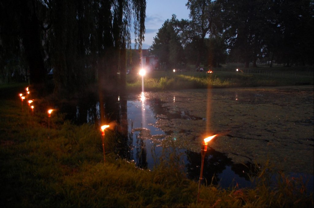 [więcej...]Puszczanie wianków, koncert akordeonowy i magiczny spektakl były otoczką dla Nocy Świętojańskiej zorganizowanej przez GCK. Uroku imprezie dodawało miejsce. Za scenerię niezwykłego wydarzenia posłużył pałac, polana ze stawkiem i ciemny las. Na moment pojawiły się robaczki świętojańskie, a rechoczące żaby w stawie wyrażały swoje zdziwienie, bo przecież przez wiele, wiele lat nikt nie zakłócał im imprezami ciszy nocnej.