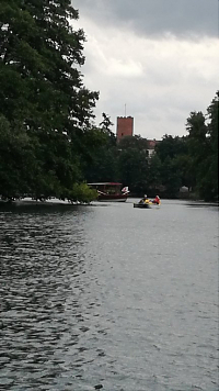Łagów przywitał wycieczkowiczów słońcem, ale ku niezadowoleniu sporej części grupy pogoda nie zachęcała do plażowania. Grupki turystów z gminy Jerzmanowa można więc było spotkać w różnych miejscach: spacerujących po lasach, odwiedzających zabytki a także pływających po jeziorach.