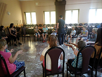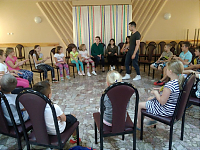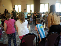 [więcej...]Dzisiaj odwiedził nas Michał Wnuk, prowadził warsztaty lalkarskie. Opowiadał o zawodzie aktora, o lalkach wykorzystywanych w teatrach. Dzieci wzięły udział w aktorskich zabawach mających na celu koncentrację i skupienie.Na koniec spotkania z panem Michałem wykonały własne kukiełki z gazety. Bardzo im się te zajęcia podobały. Wykonywały dzisiaj również anioły z masy solnej i jak co dzień grały w piłkę na dworze oraz w innych licznych zabawach.