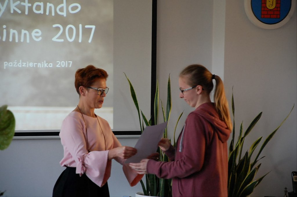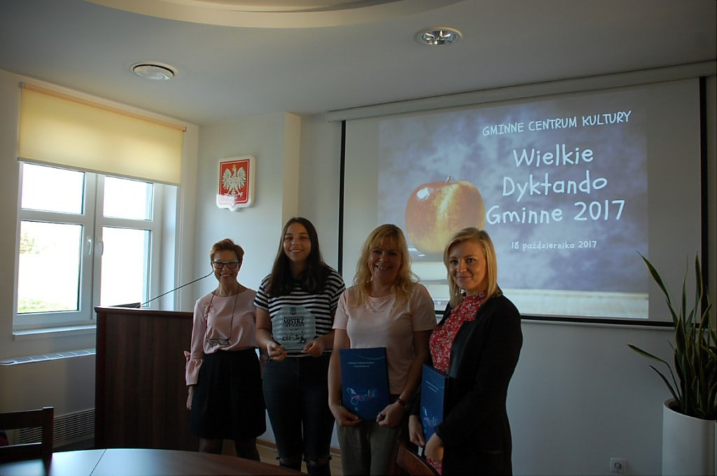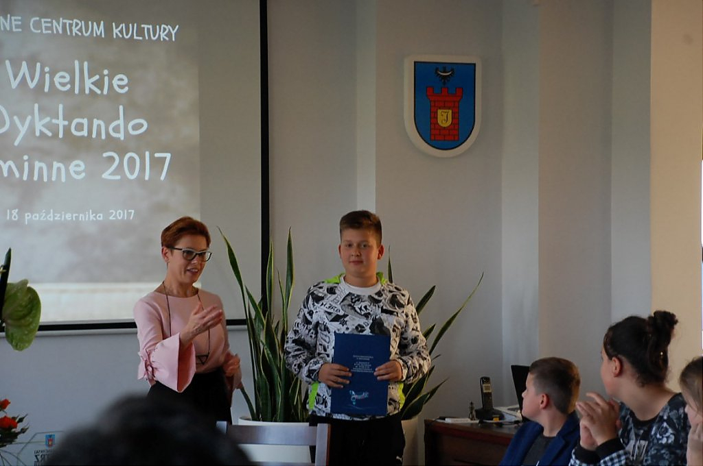 Ogłoszenie wyników odbyło się wczoraj (19.10), również w urzędzie gminy. Na uroczystość przybyli uczniowie oraz ich rodzice. Wyniki dyktanda nie były znane do końca, ponieważ prace były kodowane, a ich ogłoszenie dostarczyło wiele emocji zarówno organizatorom jak i uczestnikom. Zwycięzcy w poszczególnych kategoriach wiekowych otrzymali karty podarunkowe do znanej sieci sklepów, a wszyscy uczestnicy dyplomy uznania.