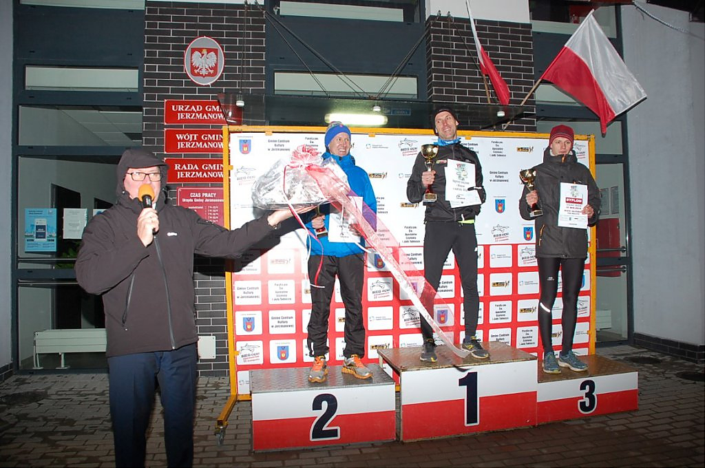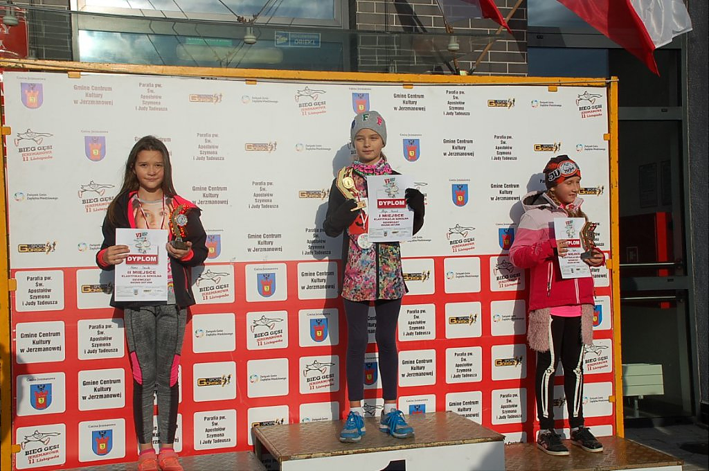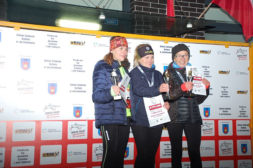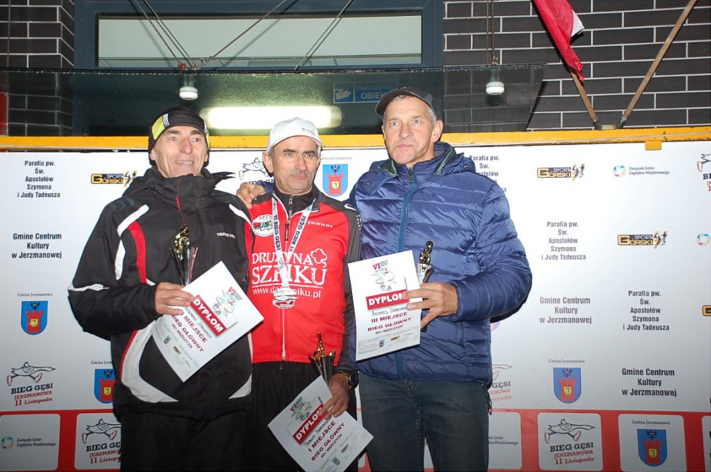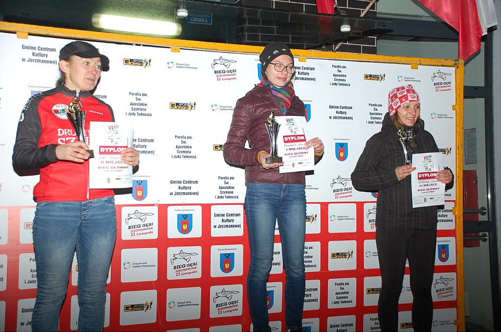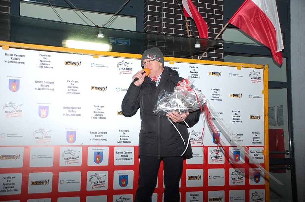 Atrakcje zakończył Patriotyczny Łańcuch Ognia z pochodniami, którymi kibice oświetlili trasę VI Biegu Gęsi, najważniejszego wydarzenia sportowego w okolicy. Równo o godz. 17:00, na sygnał startera (L. Golba) wybiegło na trasę, liczącą 8 km, 186 biegaczy. Pierwszy na metę przybiegł Sebastian Sobczak z Nowej Soli z czasem 26 min. 51 sek. W kategorii kobiet zwyciężyła Anna Ficner z Wilkowa. Niespodziankę, którą skrzętnie ukrywali organizatorzy przed zawodnikami aż do startu była osobna klasyfikacja o nazwie: „Mistrzostwa gminy Jerzmanowa”. Po raz pierwszy w historii Biegu Gęsi osobno klasyfikowani byli mieszkańcy i mieszkanki gminy. W kategorii tej nagrody otrzymali: Grzegorz Jankowski (Jaczów), Mariusz Polasik (Gaiki) oraz Ewa Paduch (Jerzmanowa). Jak zapewniali zawodnicy na Biegu Gęsi trzeba być, posmakować gęsiny i poczuć atmosferę listopadowego, wieczornego biegu. Organizator tradycyjnie zadbał o poczęstunek dla zawodników, tym razem był to gulasz z gęsich żołądków serwowany przez Kulinarny Teatr z Łodzi. Gulasz gotowany był przez cały czas trwania imprezy, na ogromnej patelni, a szef kuchni Krzysztof Górski mieszając go żartował, że jest to najbardziej patriotyczna potrawa, ponieważ są w niej biała cebula i czerwone pomidory, białe pieczarki i czerwona papryka, a do tego gęsina na św. Marcina.