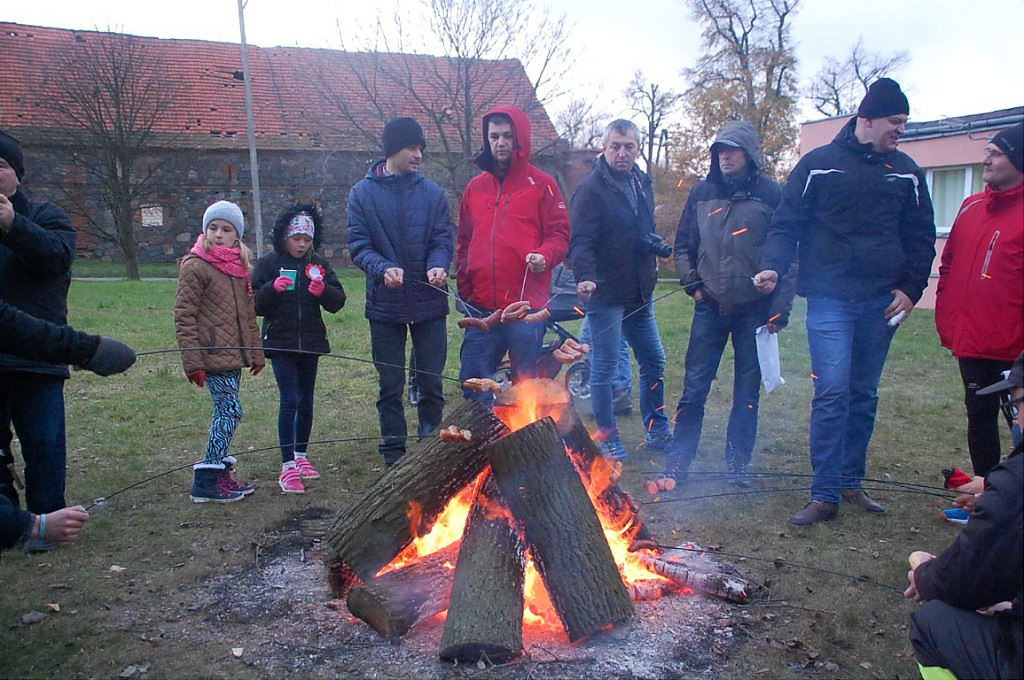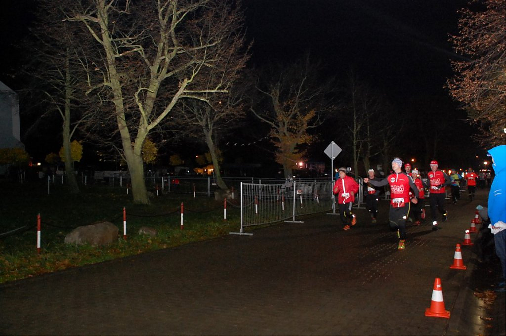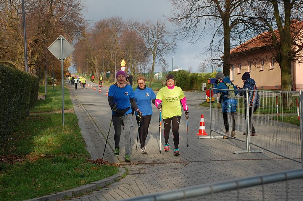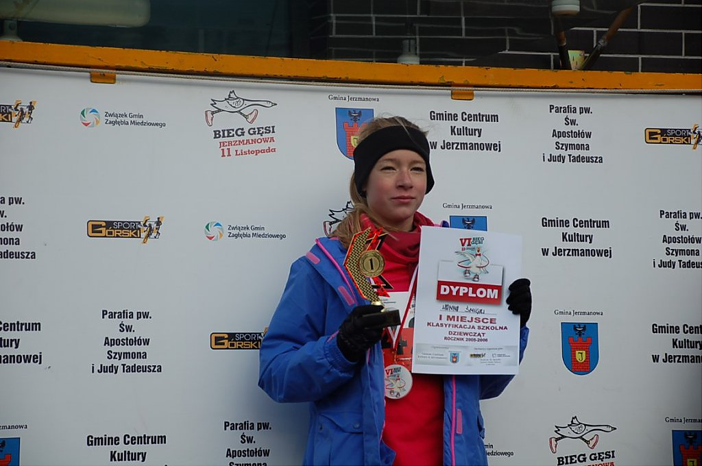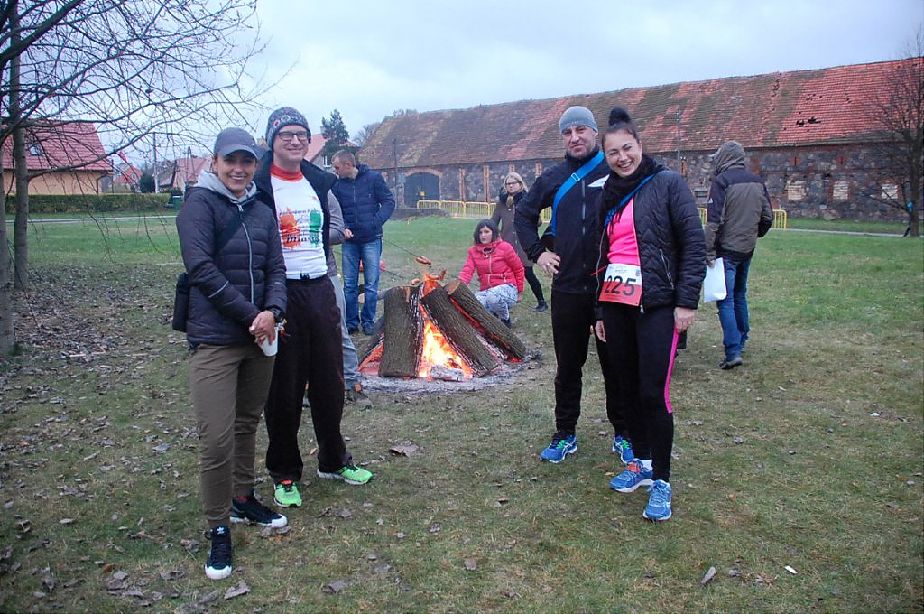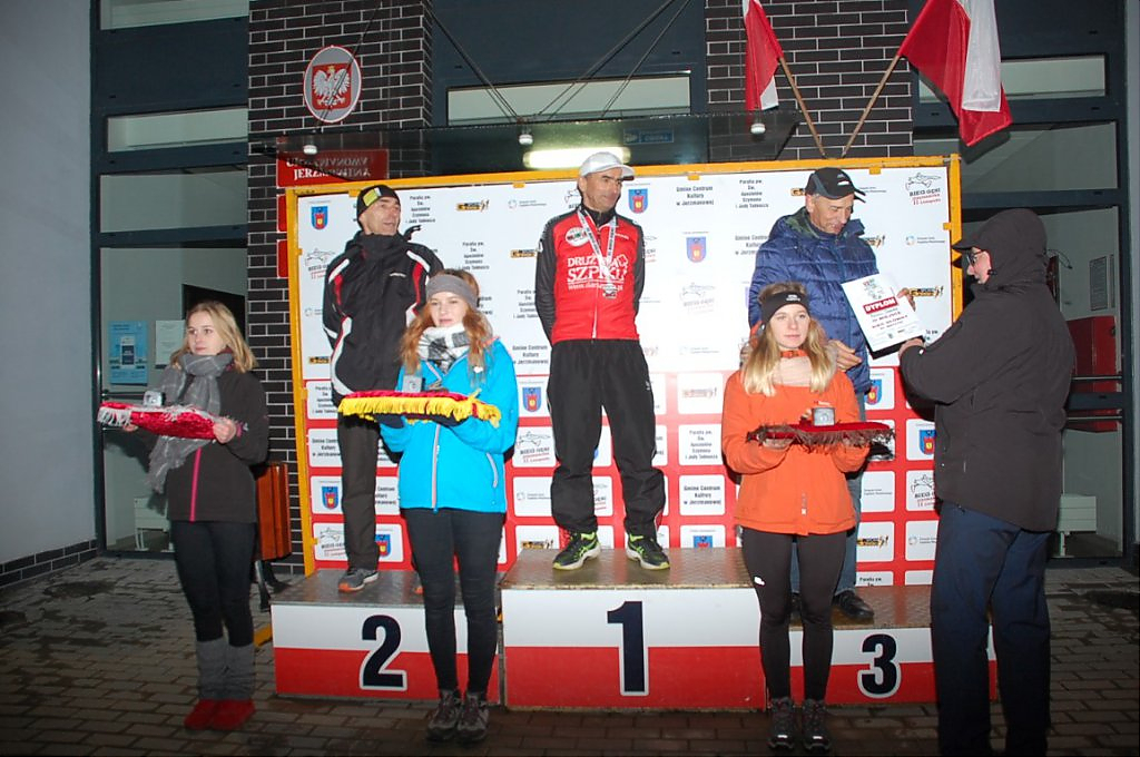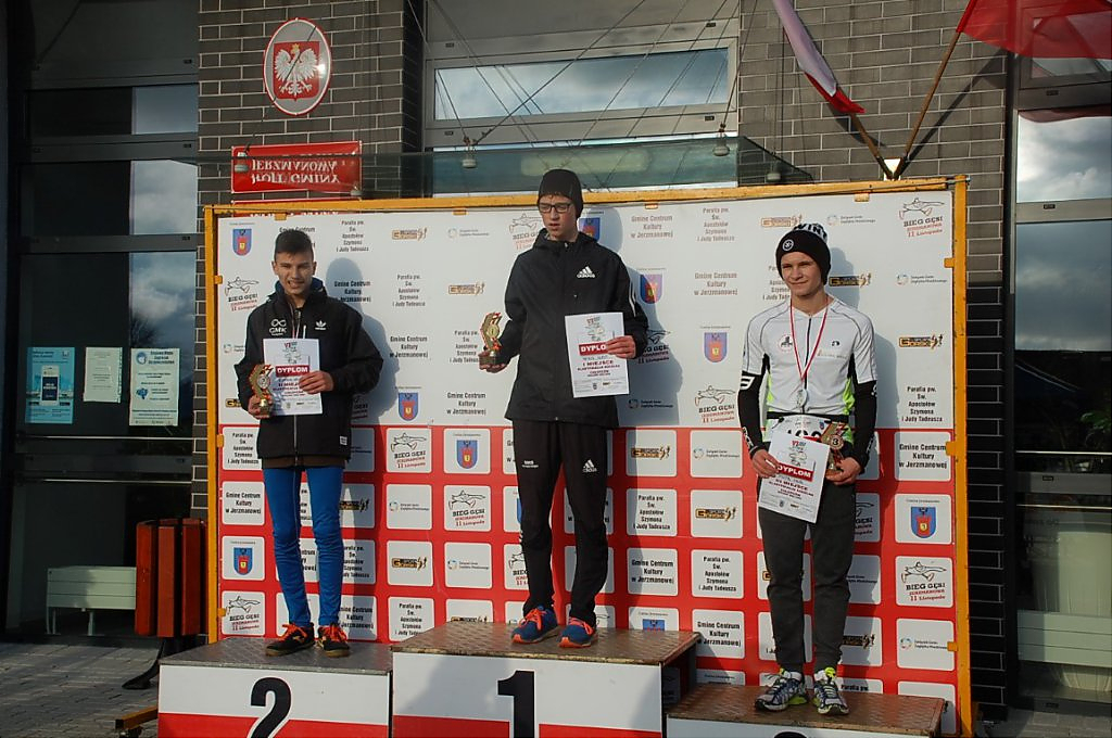 Atrakcje zakończył Patriotyczny Łańcuch Ognia z pochodniami, którymi kibice oświetlili trasę VI Biegu Gęsi, najważniejszego wydarzenia sportowego w okolicy. Równo o godz. 17:00, na sygnał startera (L. Golba) wybiegło na trasę, liczącą 8 km, 186 biegaczy. Pierwszy na metę przybiegł Sebastian Sobczak z Nowej Soli z czasem 26 min. 51 sek. W kategorii kobiet zwyciężyła Anna Ficner z Wilkowa. Niespodziankę, którą skrzętnie ukrywali organizatorzy przed zawodnikami aż do startu była osobna klasyfikacja o nazwie: „Mistrzostwa gminy Jerzmanowa”. Po raz pierwszy w historii Biegu Gęsi osobno klasyfikowani byli mieszkańcy i mieszkanki gminy. W kategorii tej nagrody otrzymali: Grzegorz Jankowski (Jaczów), Mariusz Polasik (Gaiki) oraz Ewa Paduch (Jerzmanowa). Jak zapewniali zawodnicy na Biegu Gęsi trzeba być, posmakować gęsiny i poczuć atmosferę listopadowego, wieczornego biegu. Organizator tradycyjnie zadbał o poczęstunek dla zawodników, tym razem był to gulasz z gęsich żołądków serwowany przez Kulinarny Teatr z Łodzi. Gulasz gotowany był przez cały czas trwania imprezy, na ogromnej patelni, a szef kuchni Krzysztof Górski mieszając go żartował, że jest to najbardziej patriotyczna potrawa, ponieważ są w niej biała cebula i czerwone pomidory, białe pieczarki i czerwona papryka, a do tego gęsina na św. Marcina.