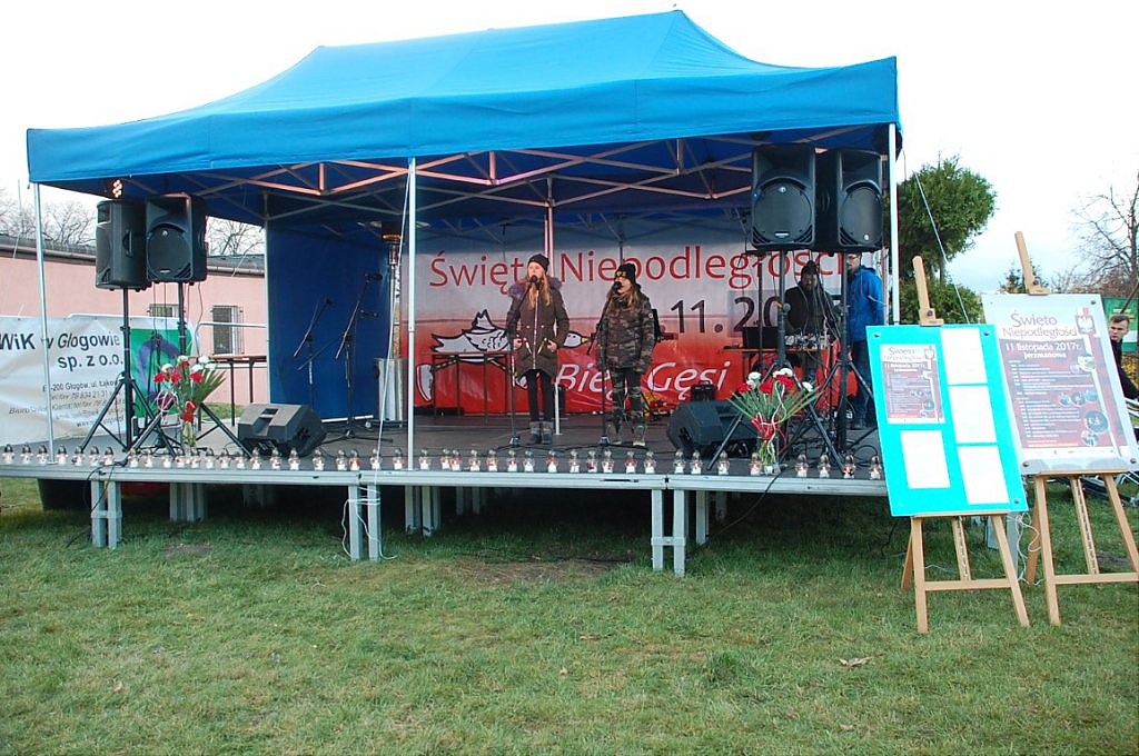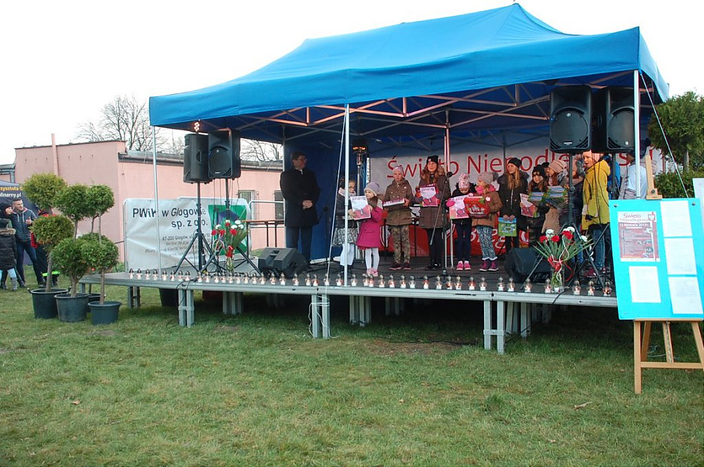 Podczas tegorocznego Święta Niepodległości wyraźny akcent stanowiły występy muzyczno – wokalne. Koncert rozpoczął patriotyczny repertuar przedstawiony przez Zespół JACZOWIACY. Po nim zaprezentował się Chór HOSANNA z Jerzmanowej. Tradycyjnie wystąpiły dzieci, które zdobyły nagrody w konkursie piosenki patriotycznej i żołnierskiej pn. „Polska zginąć już nie może” (org. GCK). O polskości i patriotyzmie opowiedział w muzycznym koncercie zespół pn. Projekt NIEPODLEGŁOŚĆ, który pomimo, że istnieje od niedawna posiada doskonałe brzmienie i wokal. Patriotycznie zagrało również trio, o którym można powiedzieć, że łączy ich nie tylko muzyka ale i sympatia do Polski. Filarem zespołu jest głogowianin Mateusz Kwapień, a trio dopełnili: Taras Backovskyy z Ukrainy i Grzegorz Abreu Krysztofiak z Kuby.