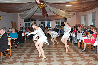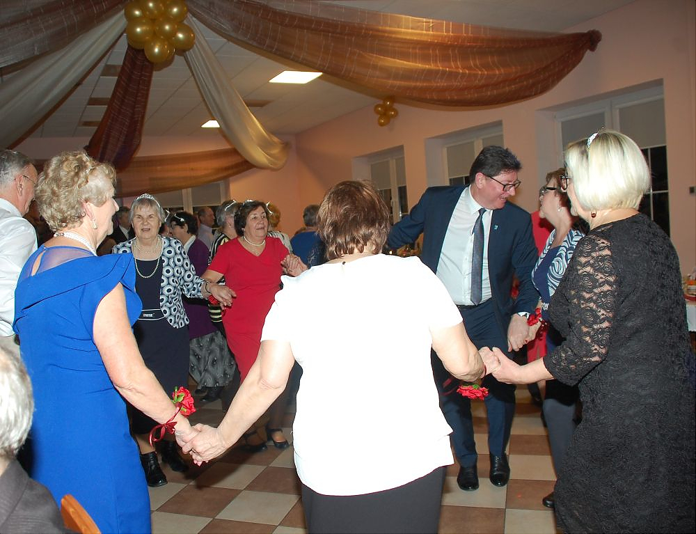 Zabawa była przednia. Już od pierwszych akordów parkiet był pełny. I tak pozostało do późnych godzin wieczornych. O muzyczną oprawę zadbał zespół Żyta Band, który oprócz walców serwował starsze kawałki i muzykę dyskotekową. Nie zabrakło akordeonu i śpiewania biesiadnego. Smaczku imprezie dodało taneczne show w wykonaniu Studia KG z Poznania, które zaprezentowało własne aranżacje tańców. Oprócz pokazów choreograficznych tancerki uczyły podstawowych kroków walca wiedeńskiego i angielskiego oraz nagrodziły najzdolniejszych uczniów. Tradycyjnie wybrano króla i królową balu, zostali nimi: Erica Wilke z gminy Rietz – Neuendorf i Andrzej Miodowicz z Jerzmanowej. O to by nikt z gości nie wyszedł głodny zadbała profesjonalna obsługa gastronomiczna, co nie pozostało bez znaczenia w wydanej przez seniorów bardzo dobrej ocenie organizacyjnej.