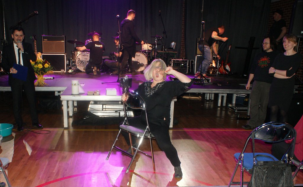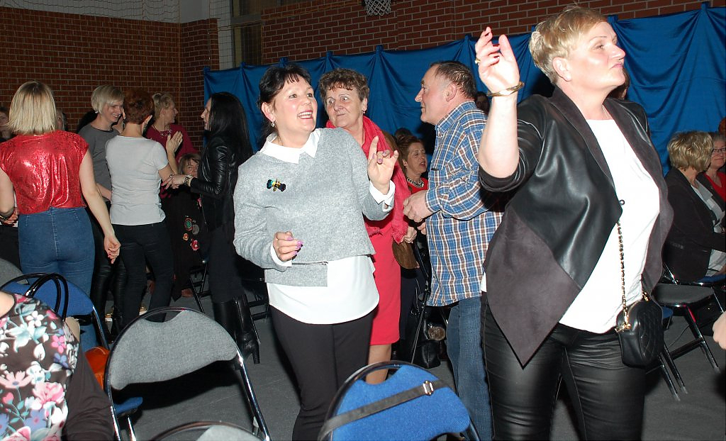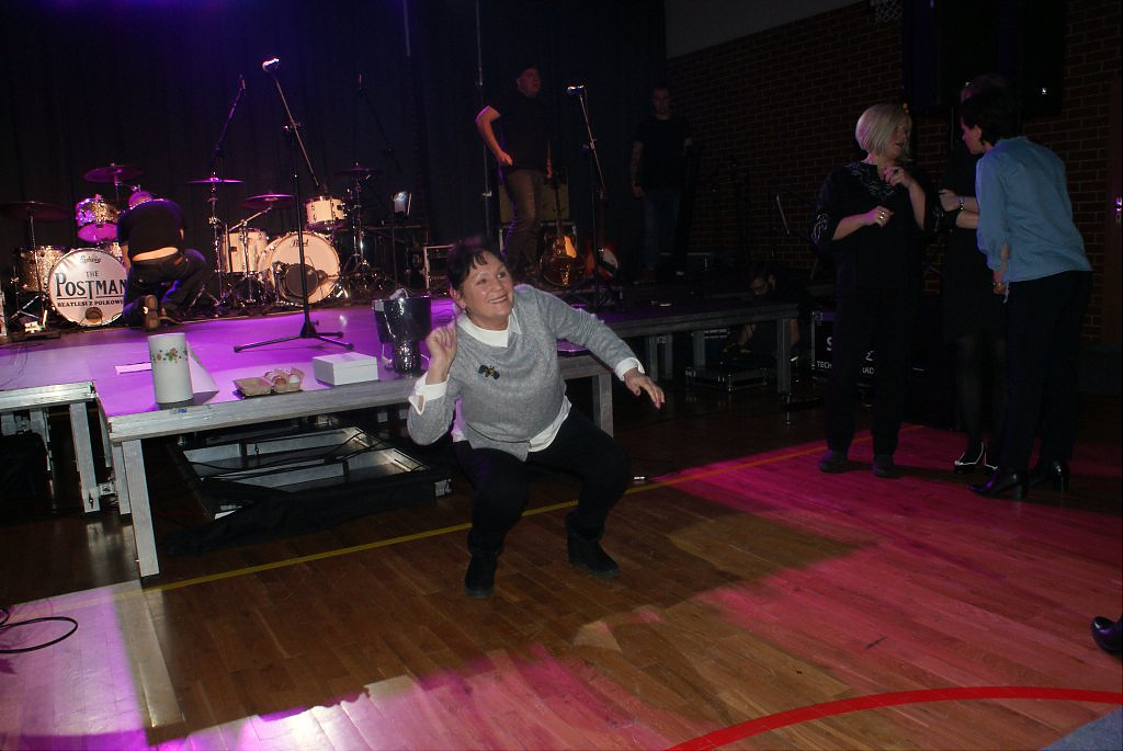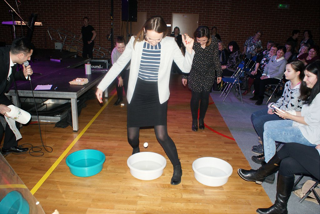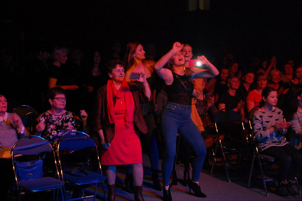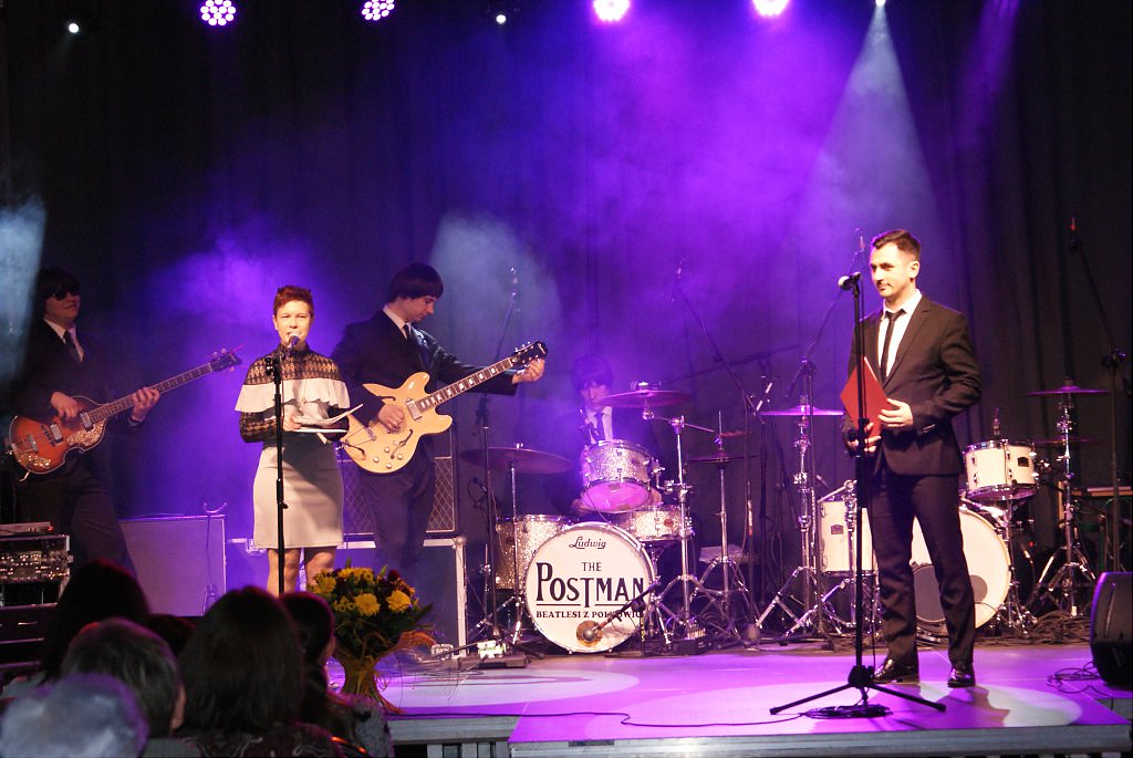Już sama zapowiedź zespołu wywołała burzę oklasków, potem była już mega zabawa. Mowa tu o występie zespołu THE POSTMAN z Polkowic, który bardzo odtwórczo zaprezentował przeboje legendarnej grupy THE BEATLES oraz bigbitową muzykę polskich wykonawców. Panie bawiły się przednio nie tylko śpiewając znane utwory, oklaskując zespół ale prezentując na parkiecie taneczne wyczyny. Półtoragodzinny koncert zachwycił publiczność, a to jeszcze tego wieczoru nie był koniec atrakcji. Czas oczekiwania na gwiazdę wieczoru wypełniły zabawne konkursy. Panie zabawnie prezentowały różne dyscypliny sportowe oraz „znosiły jajka”. Te, które najlepiej poradziły sobie
