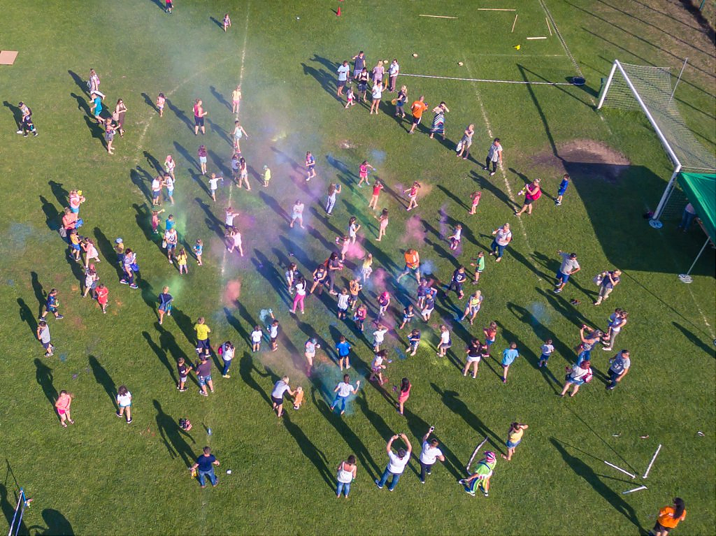 Punktem kulminacyjnym zabawy był festiwal kolorów. Obsypywanie kolorowym proszkiem trwało kilka minut ale dostarczyło wielu pozytywnych wrażeń i wywołało uśmiech nie tylko na twarzach dzieci.