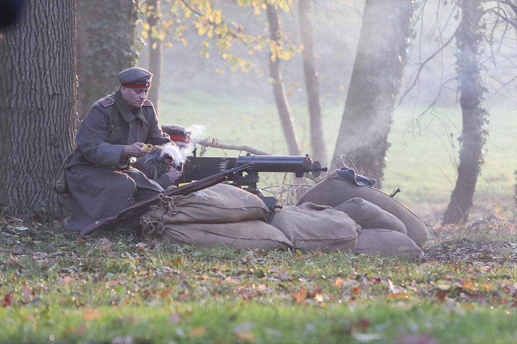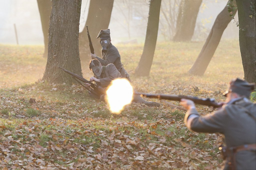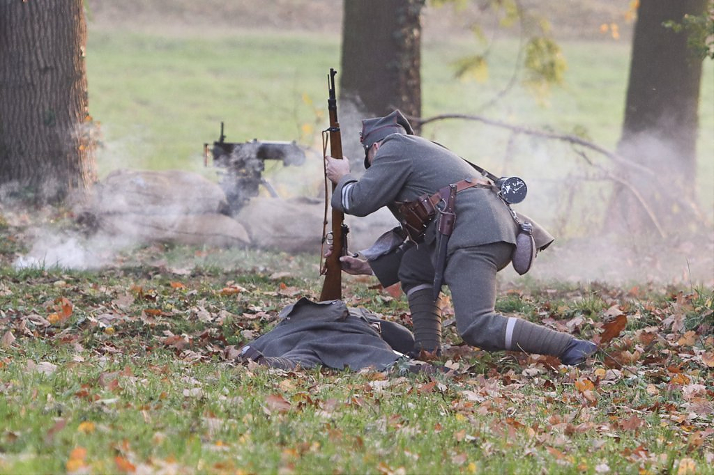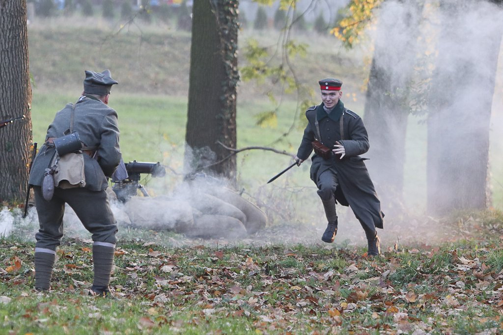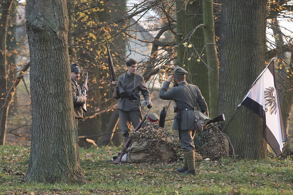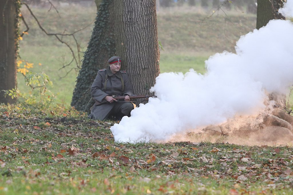 [więcej...]Oficjalne uroczystości 100-lecia Niepodległej w Jerzmanowej uświetniły pokazy historyczne z udziałem grupy rekonstrukcyjnej Leszczyńskiego Towarzystwa Strzeleckiego. Takie odtwarzanie historii to nie tylko zabawa. To także budowanie świadomości historycznej widzów, prawdziwa lekcja historii z okresu walk o niepodległość, przeniesienie w czasie do walk Wielkiej Wojny i Powstania Wielkopolskiego. W parku za pałacem podziwiać można było efektowany pokaz z użyciem pirotechniki, pełen napięcia huków, dymu i strzałów. Przygotowano także stanowiska z bronią palną, pojazdami, wyposażeniem i uzbrojeniem żołnierzy z epoki walk o niepodległość.