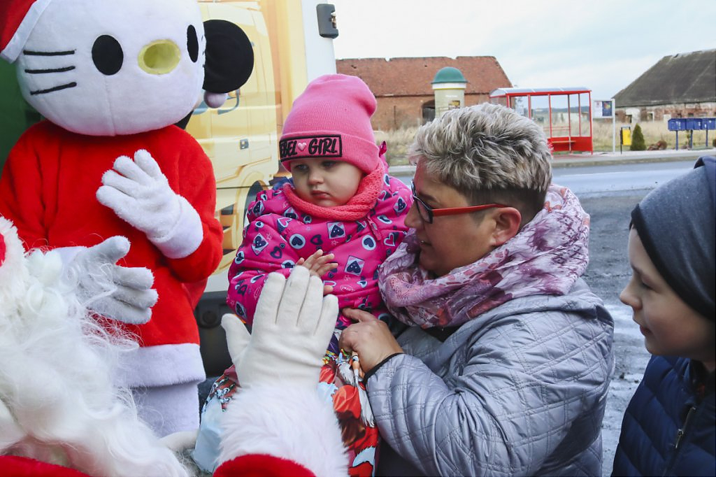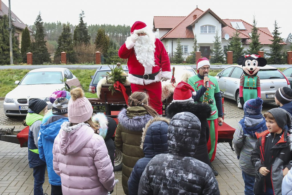 Pilnie odpowiadamy na depeszę. Kto przyjął zaproszenie GCK wie, że był to Konwój św. Mikołaja, który odwiedził ponad 700 grzecznych dzieci z terenu gminy Jerzmanowa. Towarzyszyły mu znane postacie z bajek, a mrugającym pojazdem kierował pomocnik Mikołaja. Dzieci z okrzykami radości oczekiwały świętego, który w każdej z 12 odwiedzonych miejscowości został godnie przywitany i ugoszczony. Dzieci przymilały się piosenkami, wierszykami i tańcami. W zamian otrzymały przyjacielski uścisk św. Mikołaja oraz prezenty. Na dzieci czekały również zabawy i słodki poczęstunek. Cieszymy się, że tą piękną inicjatywą „zaraziliśmy” przedstawicieli sołectw i rodziców, którzy pomogli wypełnić szczęściem każdą z miejscowości będącej na trasie konwoju.