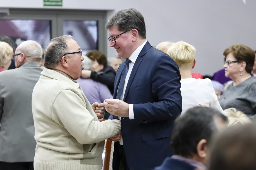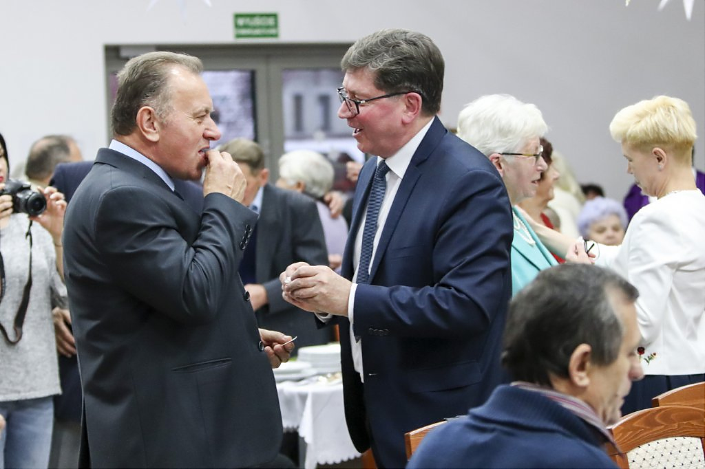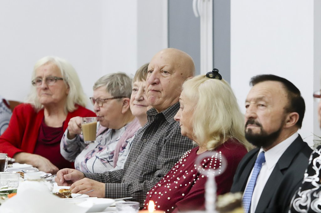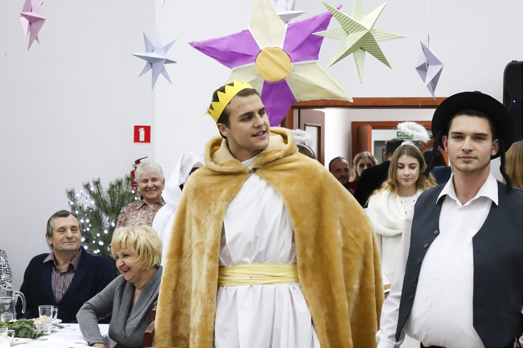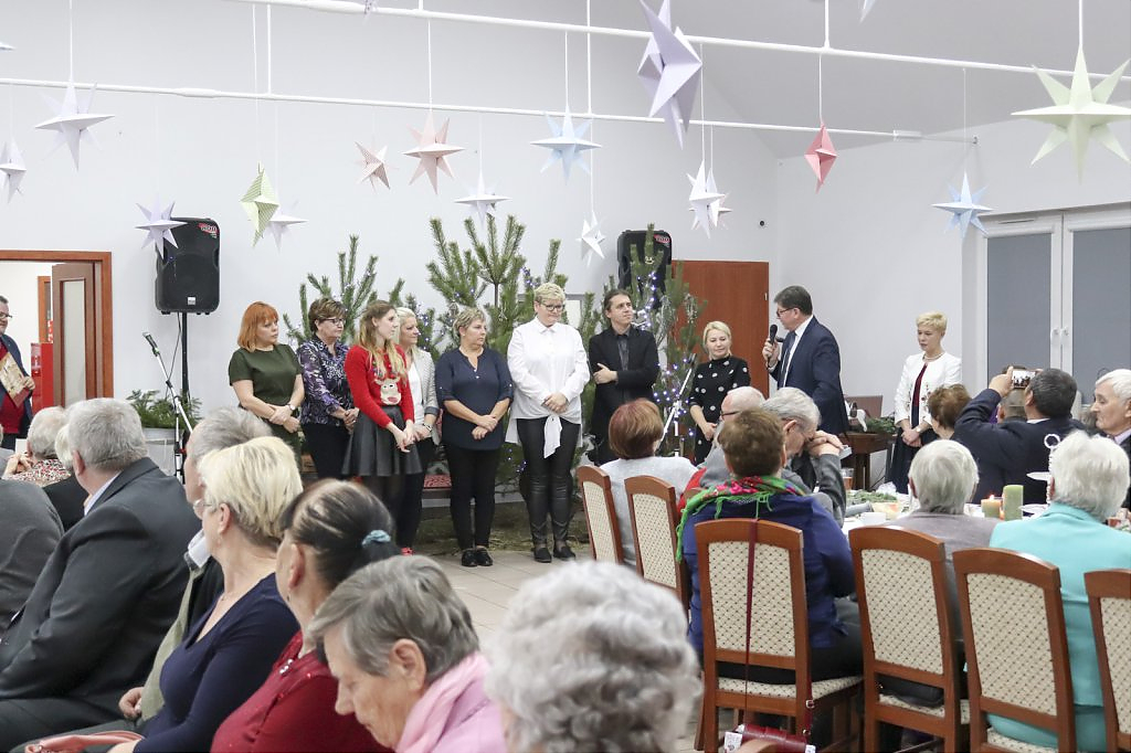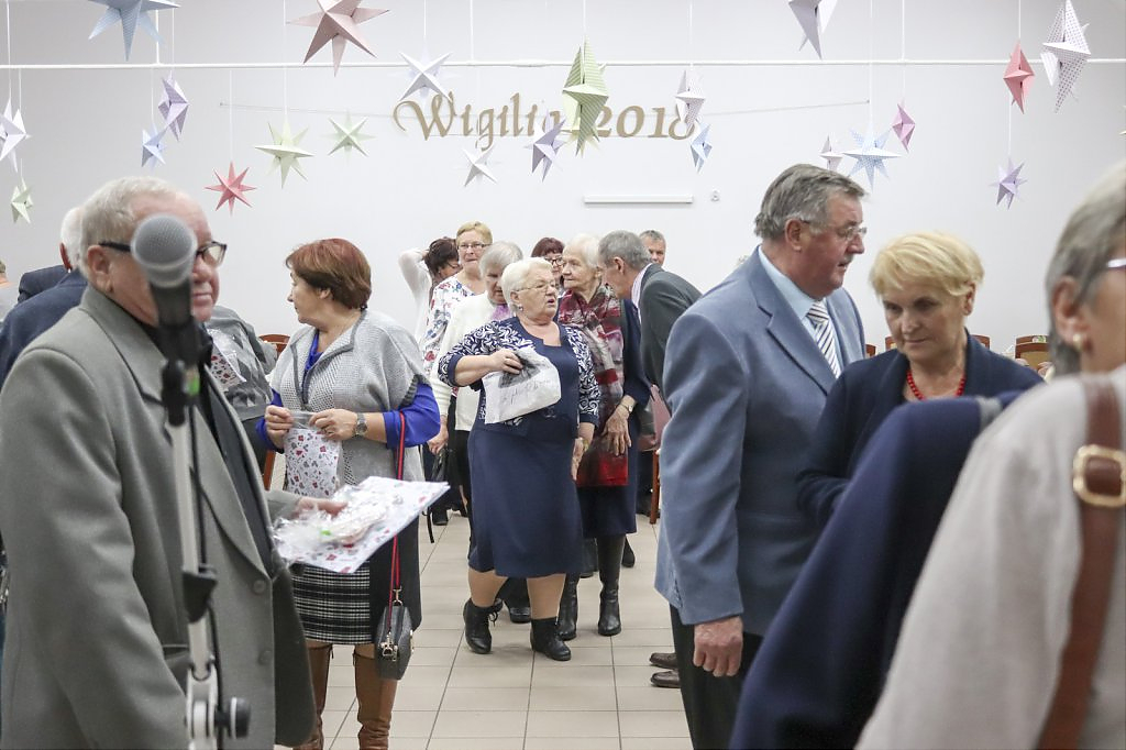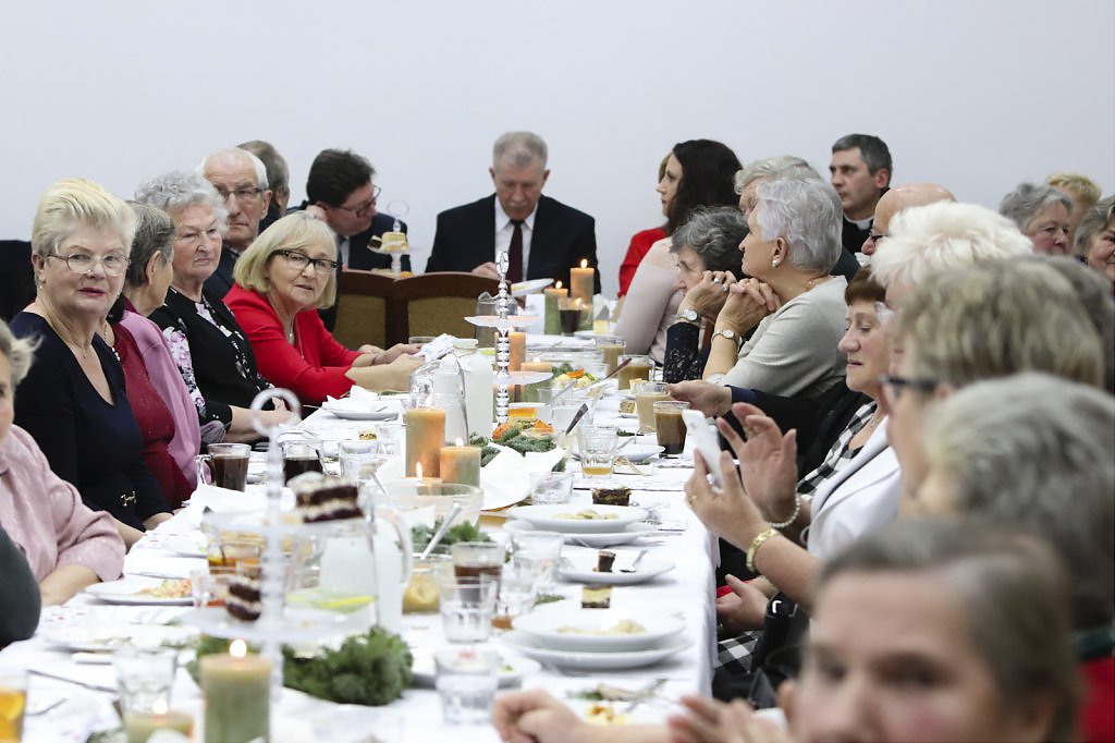 Jak tradycja karze spotkanie przy wigilijnym stole rozpoczęto odczytaniem fragmentu Ewangelii św. Łukasza o narodzeniu Chrystusa i krótkim przesłaniem ks. Piotra Matusa o wielkim cudzie danym każdemu człowiekowi tj. możliwości wewnętrznego odrodzenia się. Wśród życzeń zapoczątkowanych przez wójta Lesława Golbę dominowały życzenia zdrowia, radości oraz pogody ducha. Największą chorobą cywilizacji jest samotność. Życzę Wam, drodzy seniorzy, aby ta choroba nigdy Was nie dotknęła – powiedział na zakończenie swojego wystąpienia wójt. Potem życzenia popłynęły lawiną, przy łamanym opłatku mieszkańcy gminy, sąsiedzi, Ci mniej lub bardziej zdrowsi, młodsi i starsi życzyli sobie zdrowia, radości, optymizmu i spokojnych czasów.