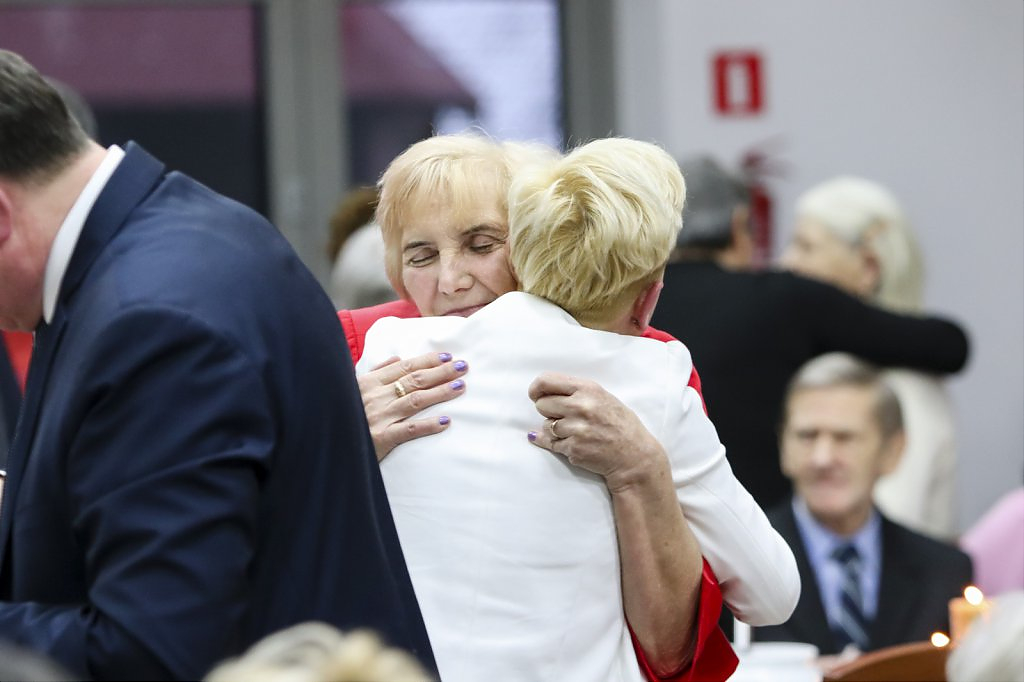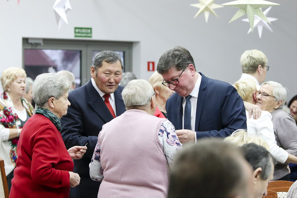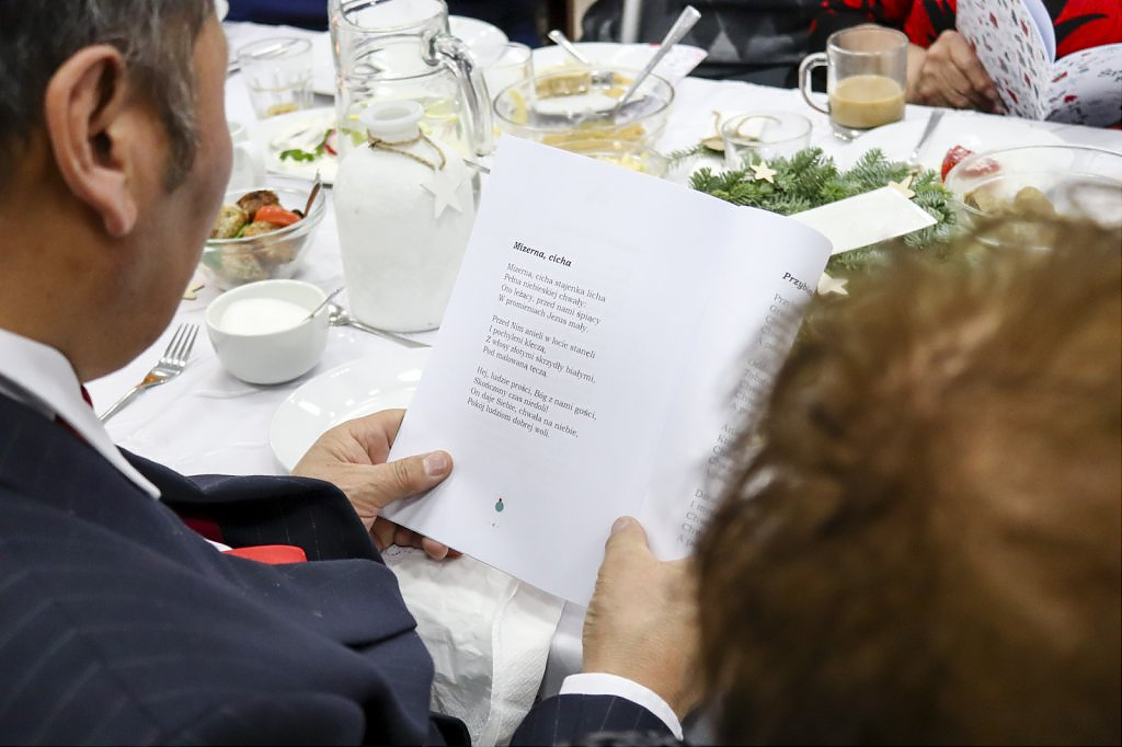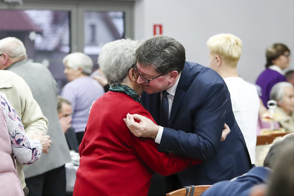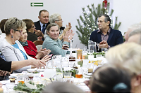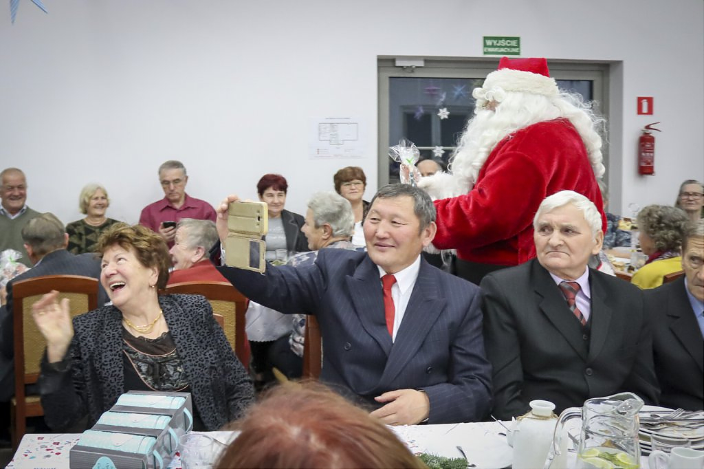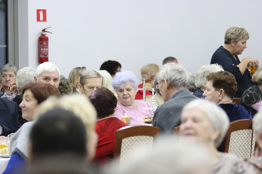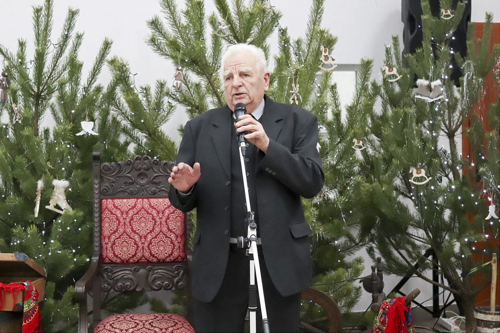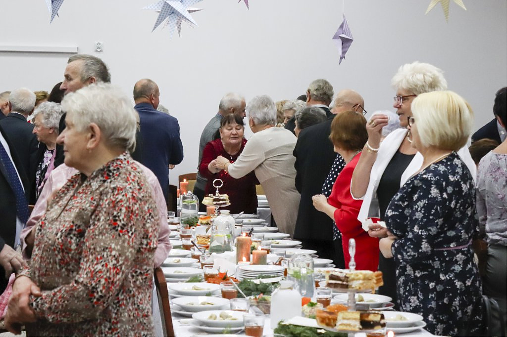 Jak tradycja karze spotkanie przy wigilijnym stole rozpoczęto odczytaniem fragmentu Ewangelii św. Łukasza o narodzeniu Chrystusa i krótkim przesłaniem ks. Piotra Matusa o wielkim cudzie danym każdemu człowiekowi tj. możliwości wewnętrznego odrodzenia się. Wśród życzeń zapoczątkowanych przez wójta Lesława Golbę dominowały życzenia zdrowia, radości oraz pogody ducha. Największą chorobą cywilizacji jest samotność. Życzę Wam, drodzy seniorzy, aby ta choroba nigdy Was nie dotknęła – powiedział na zakończenie swojego wystąpienia wójt. Potem życzenia popłynęły lawiną, przy łamanym opłatku mieszkańcy gminy, sąsiedzi, Ci mniej lub bardziej zdrowsi, młodsi i starsi życzyli sobie zdrowia, radości, optymizmu i spokojnych czasów.
