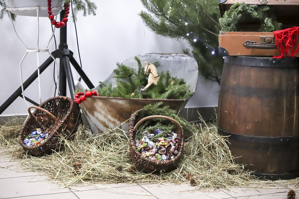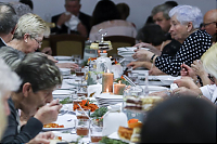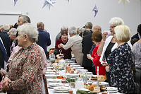 Tradycją wigilii organizowanej przez GCK jest wyśmienity poczęstunek. Na stołach pojawiło się 12 dań przygotowanych z domowym smakiem i aromatem. Nie zabrakło barszczu z uszkami, pierogów, ryby oraz jarskich gołąbków i gryczaków. Wśród napojów królował kompot z suszu. Świąteczną atmosferę wypełniły wspomnienia, którymi podzielili się uczestnicy wigilii. Opowieści przybliżyły wigilię dzieciństwa przeżytą w Kazachstanie, wspominano pasterki w Dębinie (obecny Jakubów), tęgą zimę, pamięcią sięgano do wigilii w czasie wojny lub tuż po niej. Miłym i oczekiwanym akcentem wigilijnego spotkania była wizyta św. Mikołaja, który przybył z prezentami. Każdy z uczestników otrzymał anielski prezent – dzieło, które wyszło z rąk instruktora p. Adrianny Stosik oraz kartkę świąteczną z życzeniami od dzieci uczestniczących w zajęciach artystycznych prowadzonych przez GCK.