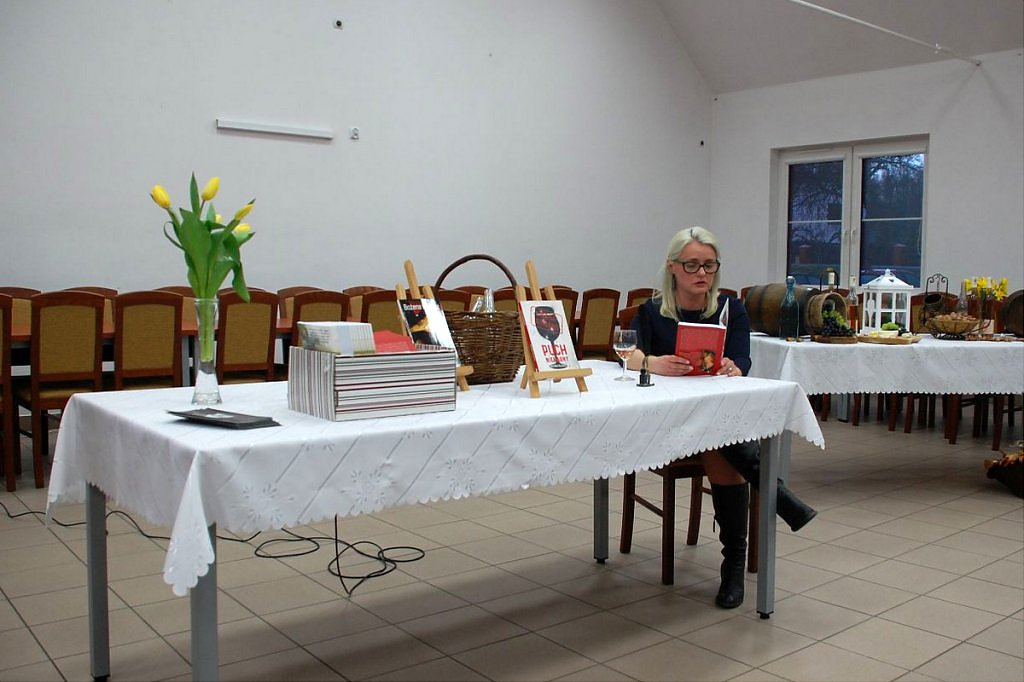 Podczas spotkania wysłuchać można było fragmentów nowej książki i skosztować wyśmienitego wina pochodzącego z jej rodzinnej - należącej do syna, winnicy w Jakubowie. Motyw winnicy jest także głównym tłem fabuły ukazującej perypetie Małgorzaty – głównej bohaterki, przez co czytając książkę ma się nieodparte wrażenie mocnego powiązania bohaterki parającej się winiarstwem z autorką, która w prawdziwym życiu zajmuje się tym samym.