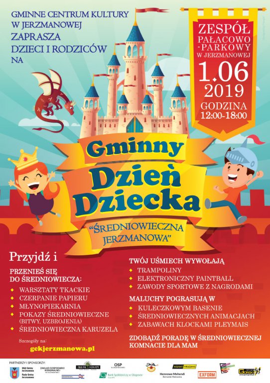 [więcej...]1 czerwca 2019 od godziny 12:00 zapraszamy wszystkie dzieci i rodziców na teren Zespołu Pałacowo-Parkowego w Jerzmanowej na Gminny Dzień Dziecka pn. "Średniowieczna Jerzmanowa".