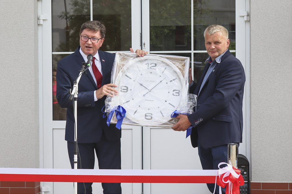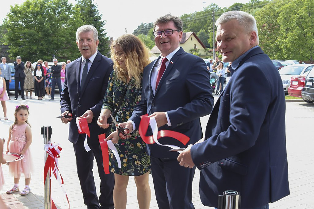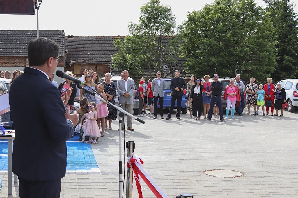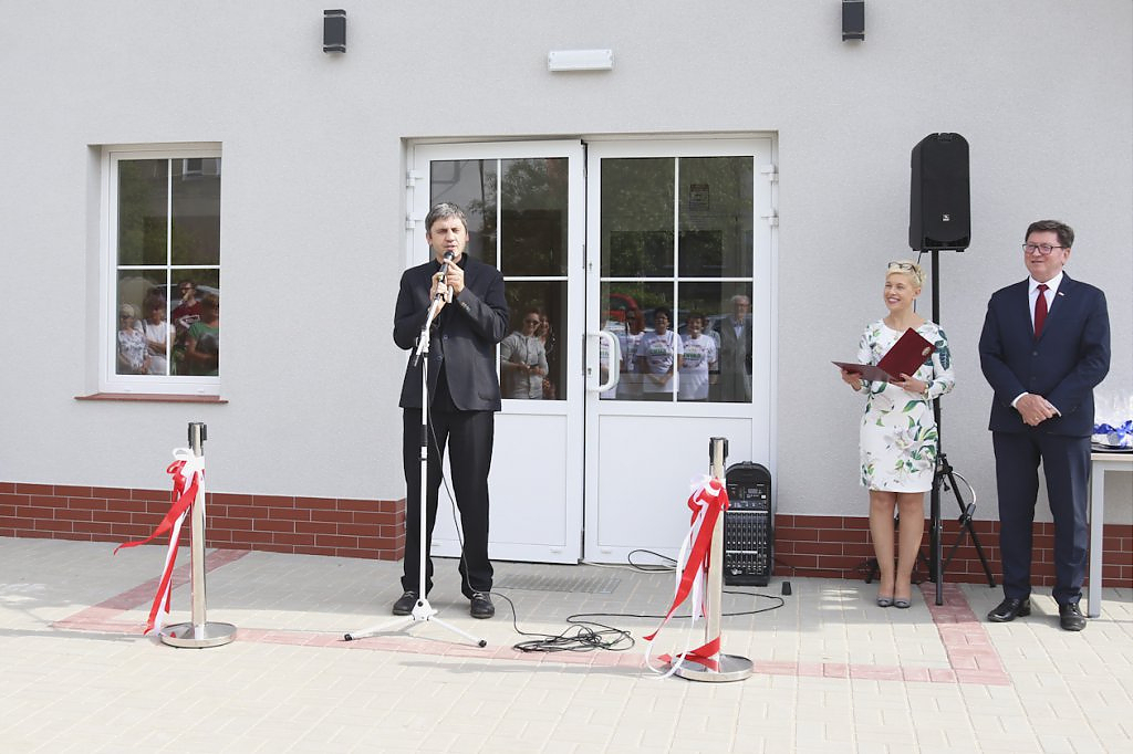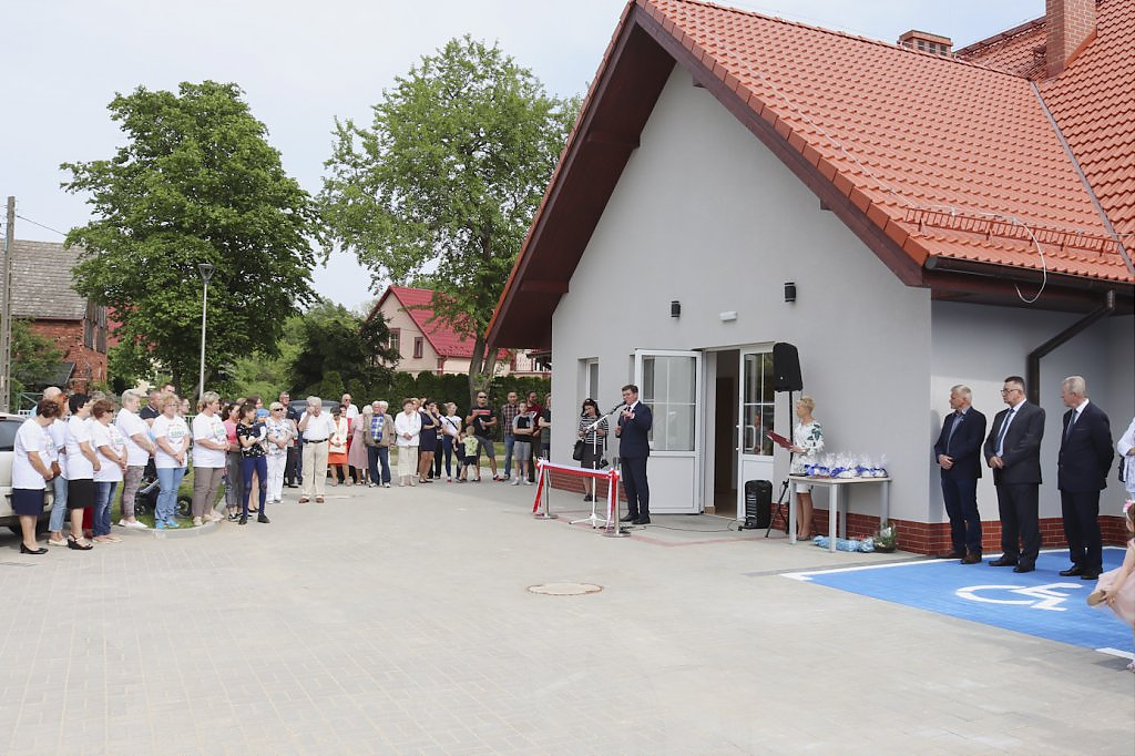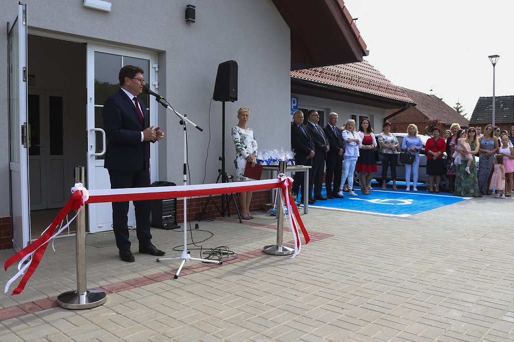 Podziękowaniom nie było końca. Moment przecięcia wstęgi poprzedziło przemówienie Wójta Gminy – Lesława Golby, w którym to wielokrotnie zaznaczał jak istotnymi elementami podczas powstawania inwestycji są: międzyludzka współpraca, zrozumienie, zaangażowanie i wspólne dążenie do celu. Dzięki takim właśnie cechom wykonawców i osób zaangażowanych w projekt, budowa świetlicy przebiegła sprawnie od momentu pozyskania działki od Agencji Nieruchomości Rolnej, przez likwidację napowietrznej linii średniego napięcia, etapy projektowania, wykończenia po wyposażenie obiektu.