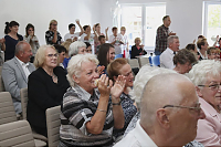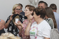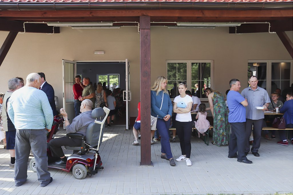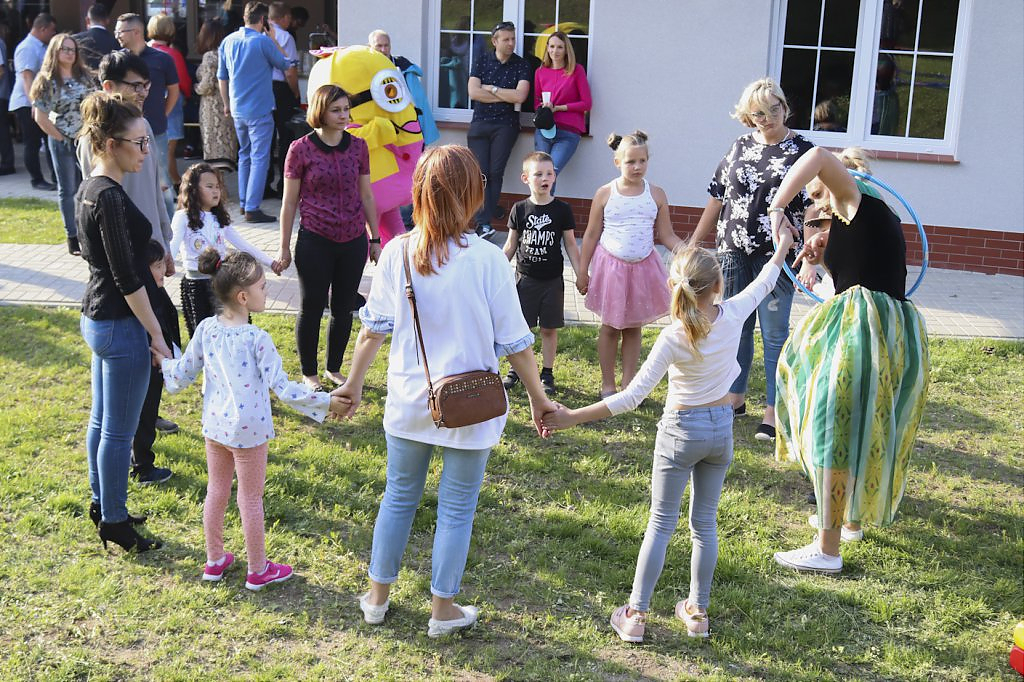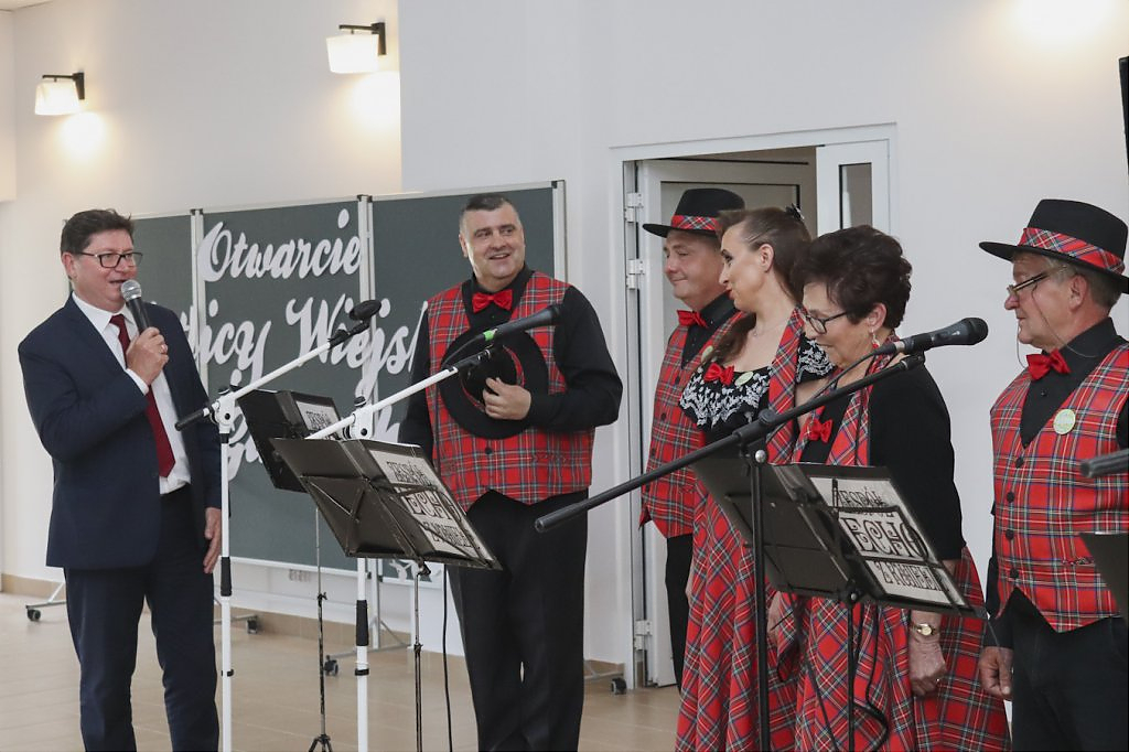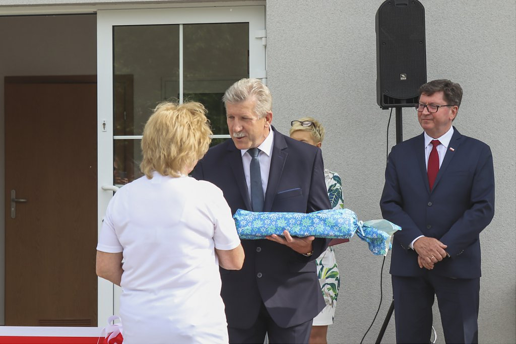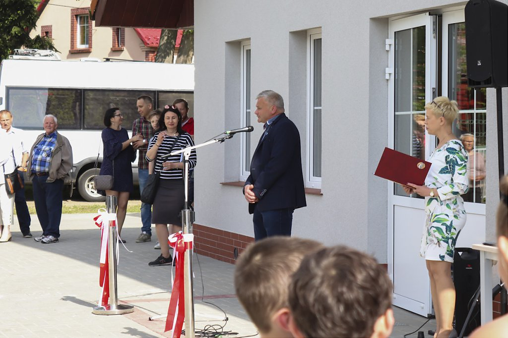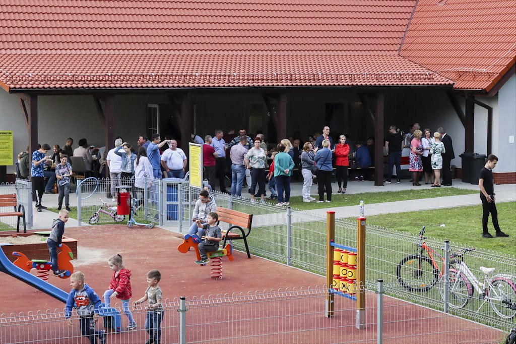 Podziękowaniom nie było końca. Moment przecięcia wstęgi poprzedziło przemówienie Wójta Gminy – Lesława Golby, w którym to wielokrotnie zaznaczał jak istotnymi elementami podczas powstawania inwestycji są: międzyludzka współpraca, zrozumienie, zaangażowanie i wspólne dążenie do celu. Dzięki takim właśnie cechom wykonawców i osób zaangażowanych w projekt, budowa świetlicy przebiegła sprawnie od momentu pozyskania działki od Agencji Nieruchomości Rolnej, przez likwidację napowietrznej linii średniego napięcia, etapy projektowania, wykończenia po wyposażenie obiektu.
