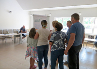 Jak dotąd udało się nam już zebrać mnóstwo cennych opinii na temat działań kulturalnych przeprowadzanych na terenie gminy Jerzmanowa oraz oczekiwań z nimi związanych. Od połowy maja spotykaliśmy się z mieszkańcami na zorganizowanych wywiadach indywidualnych i grupowych, w szkołach i na świetlicach wiejskich. Zobaczyć można było naszą grupę badawczą uzbrojoną w notesy i długopisy na wywiadach spacerowych na ulicach w poszczególnych miejscowościach.