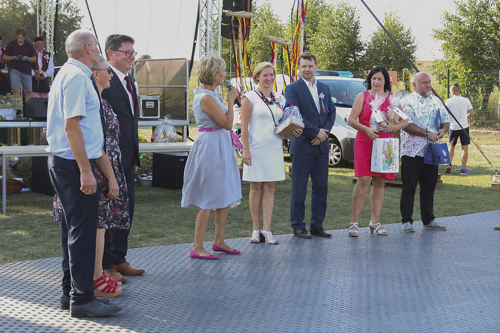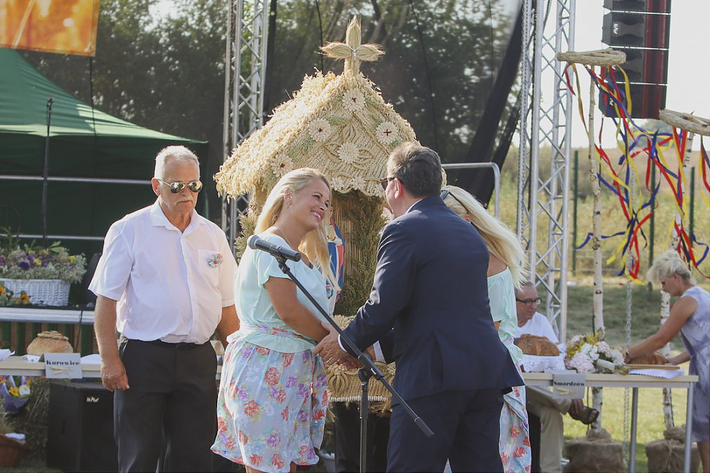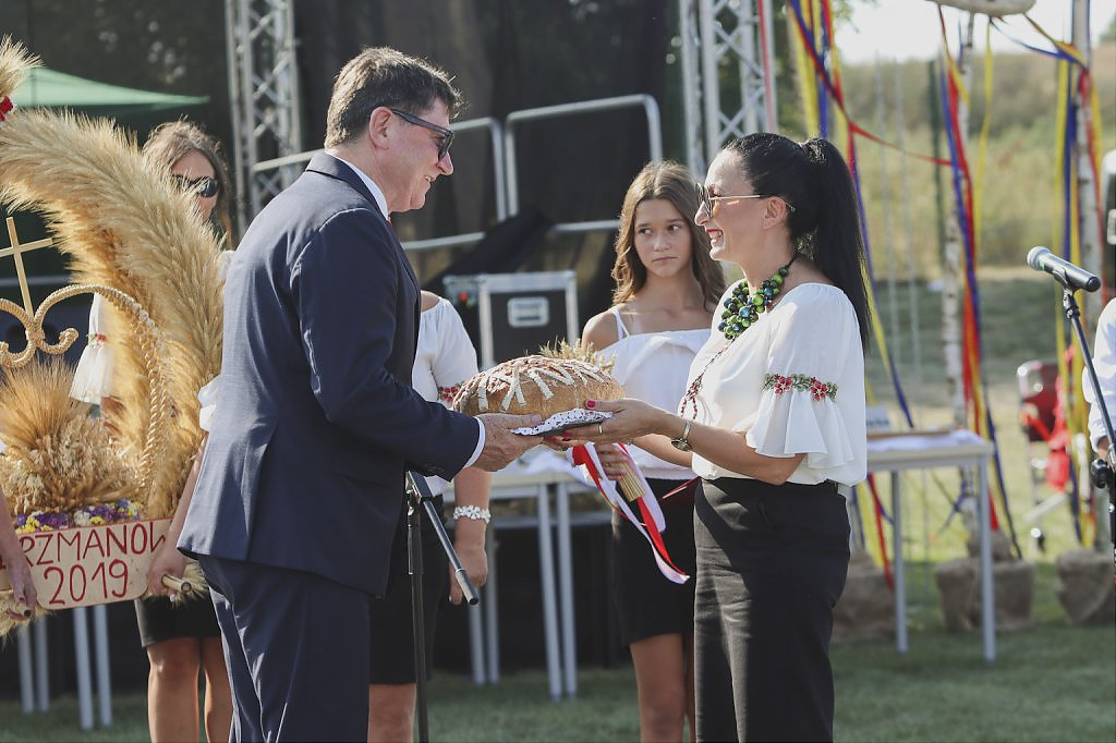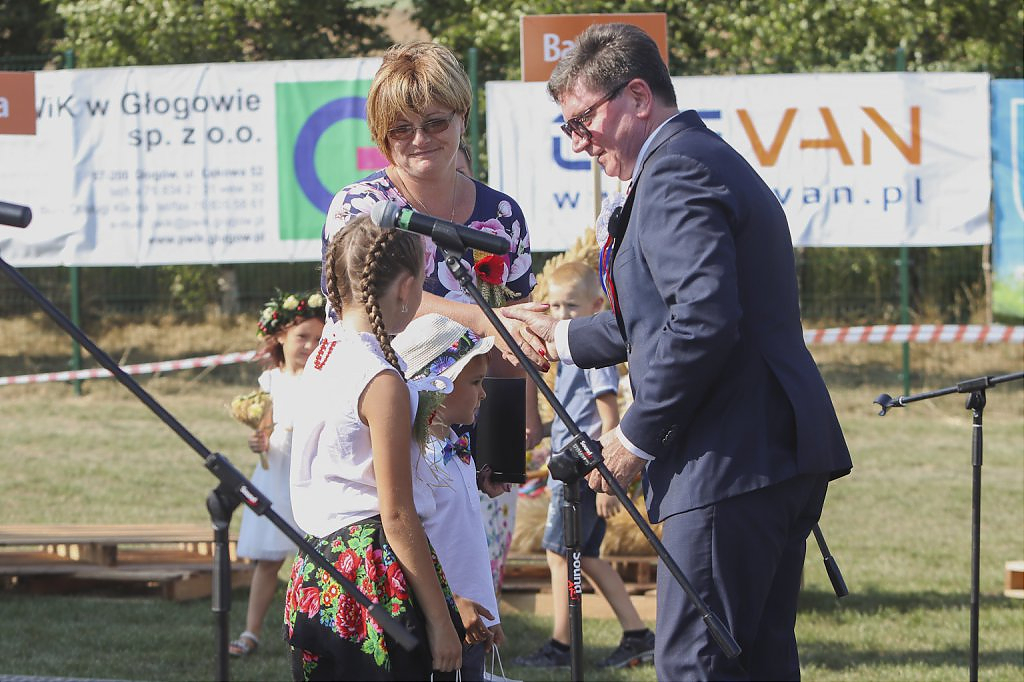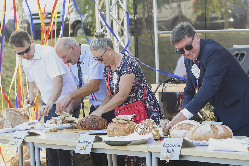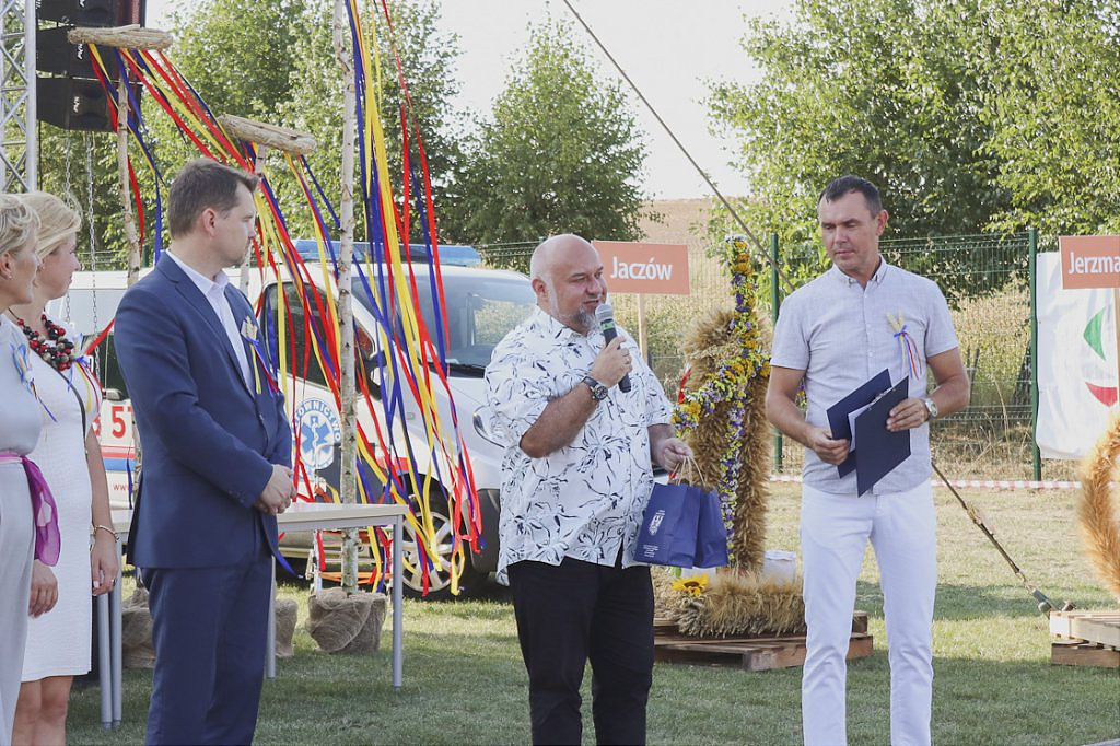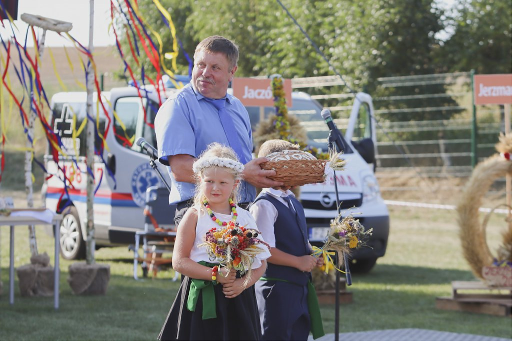 Uroczystość otworzyli starostowie dożynek Dorota Żydaczewska i Aleksander Iwański przekazując Wójtowi Gminy Jerzmanowa - Lesławowi Golbie chleb do sprawiedliwego podziału. "Tegoroczne żniwa nie były łatwe, wiemy stąd, że i plony nie są wysokie. Mimo klęski suszy możemy dziękować Bogu i za to co zebraliśmy z pól." – mówił wspominając słowa rolników w swoim przemówieniu wójt. Dziękując im za ciężką pracę i całoroczny trud dbania o rolę i gospodarstwo nadmienił, iż najnowsze technologie nie zastąpią człowieka w pracy na roli. Podziękowania dla rolników, na ręce starostów dożynek złożyli także zaproszeni parlamentarzyści wśród nich posłowie Ewa Drozd, Elżbieta Stępień, Wojciech Zubowski, starosta głogowski Jarosław Dudkowiak, życząc dobrej zabawy w dniu tak wyjątkowego święta.