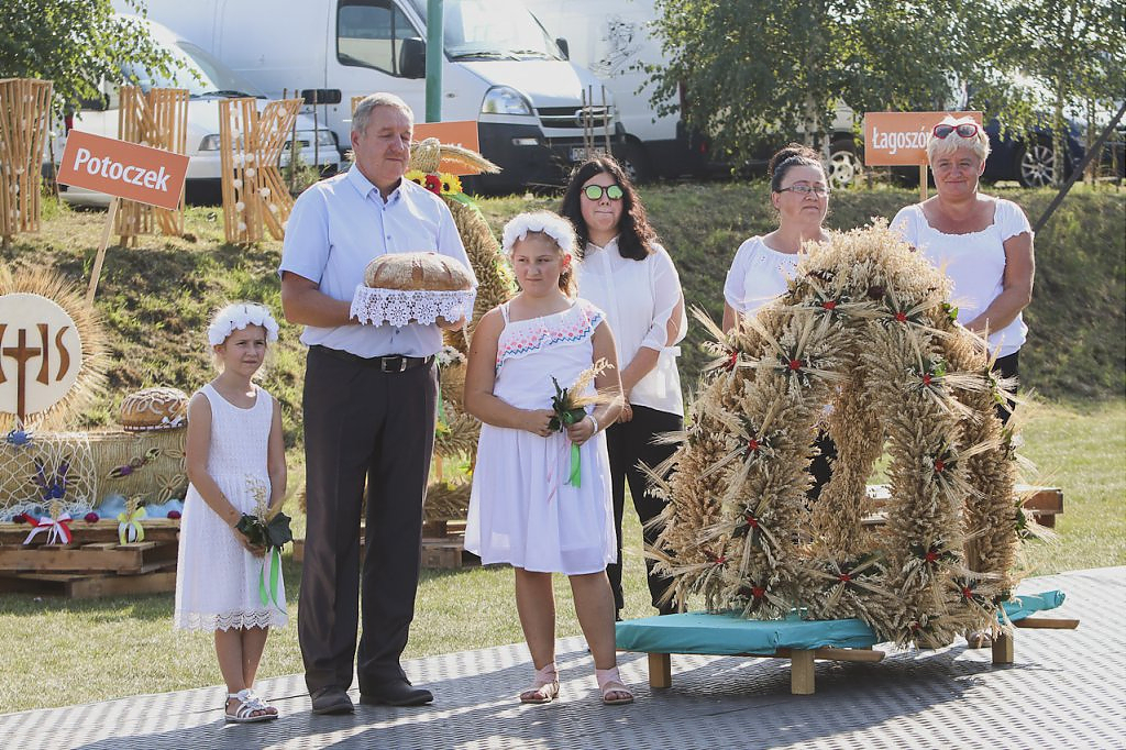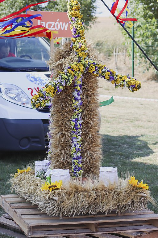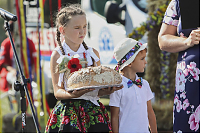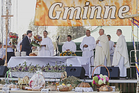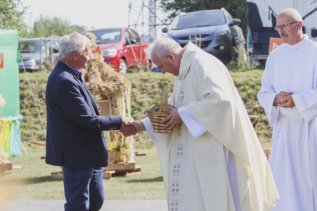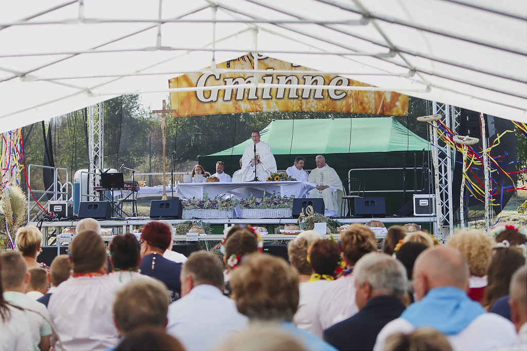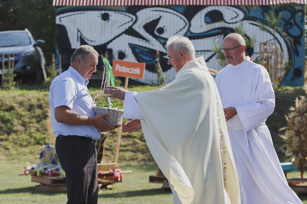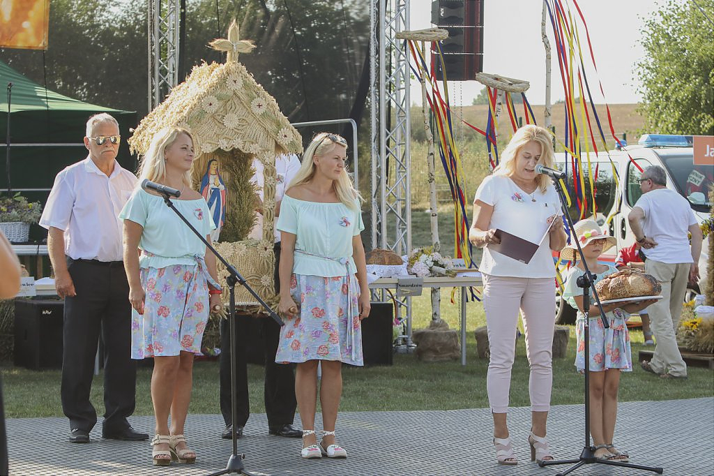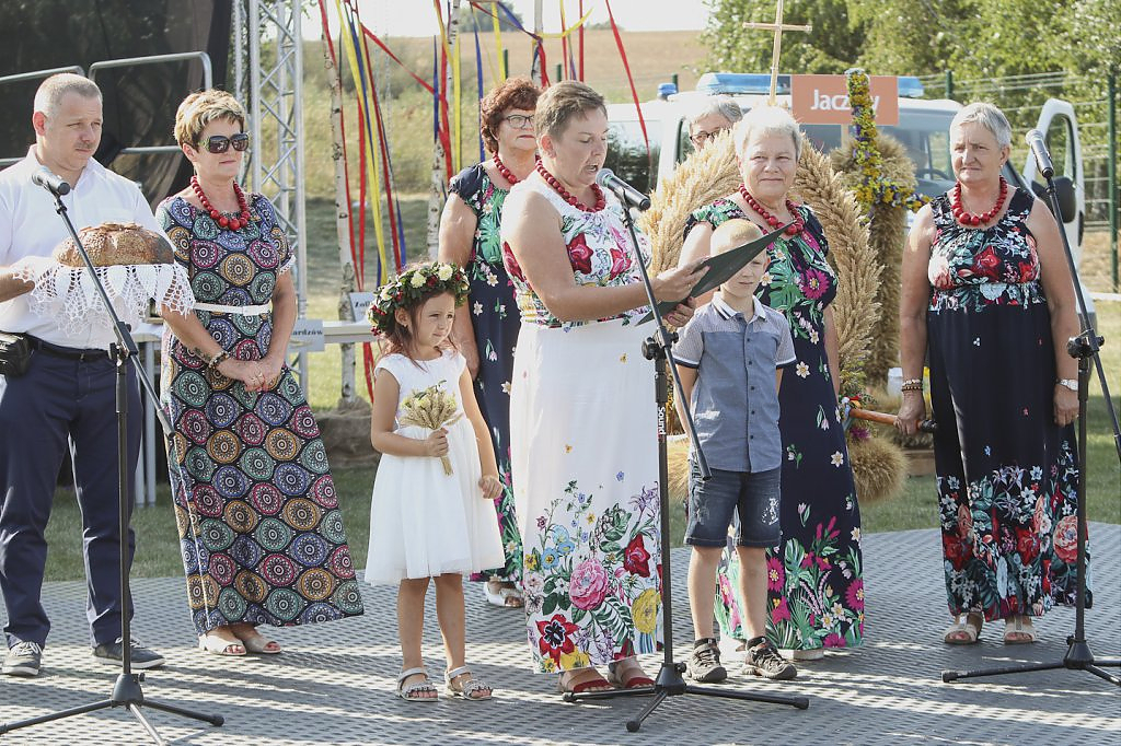 Tegoroczne uhonorowanie codziennej i ciężkiej pracy rolników odbyło się w największej miejscowości naszej gminy – Jaczowie. Miejscowości z wieloletnią historią i tradycją rolniczą z której wywodzili się najlepsi gospodarze. Tradycyjnie uroczystości mające religijny i ludowy charakter rozpoczęto Mszą Św. dziękczynną koncelebrowaną przez ks. dziekana Zbigniewa Walaszka, o. Łukasza Wójcika i Piotra Matusa. 12 rodzajów darów natury ofiarowały na ołtarz wszystkie sołectwa. Proboszcz poświęcił także piękne dożynkowe wieńce i pobłogosławił rolników.
