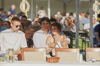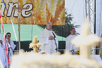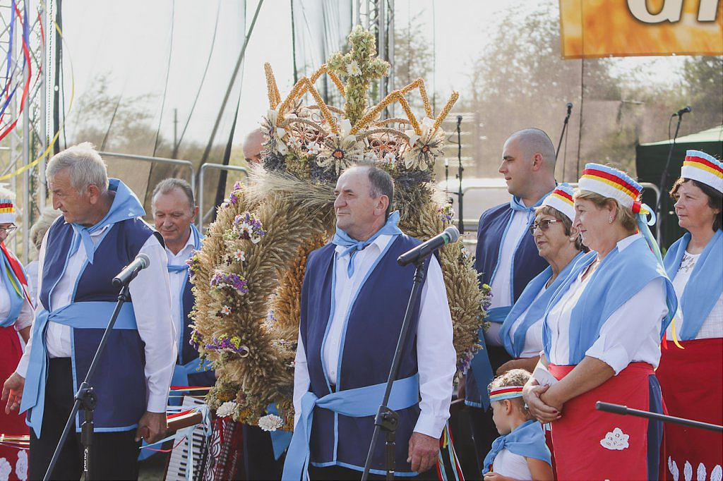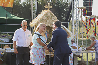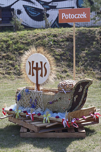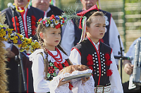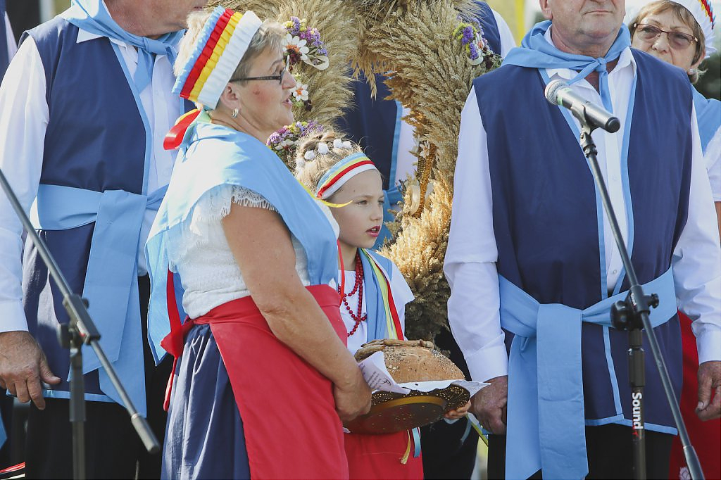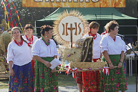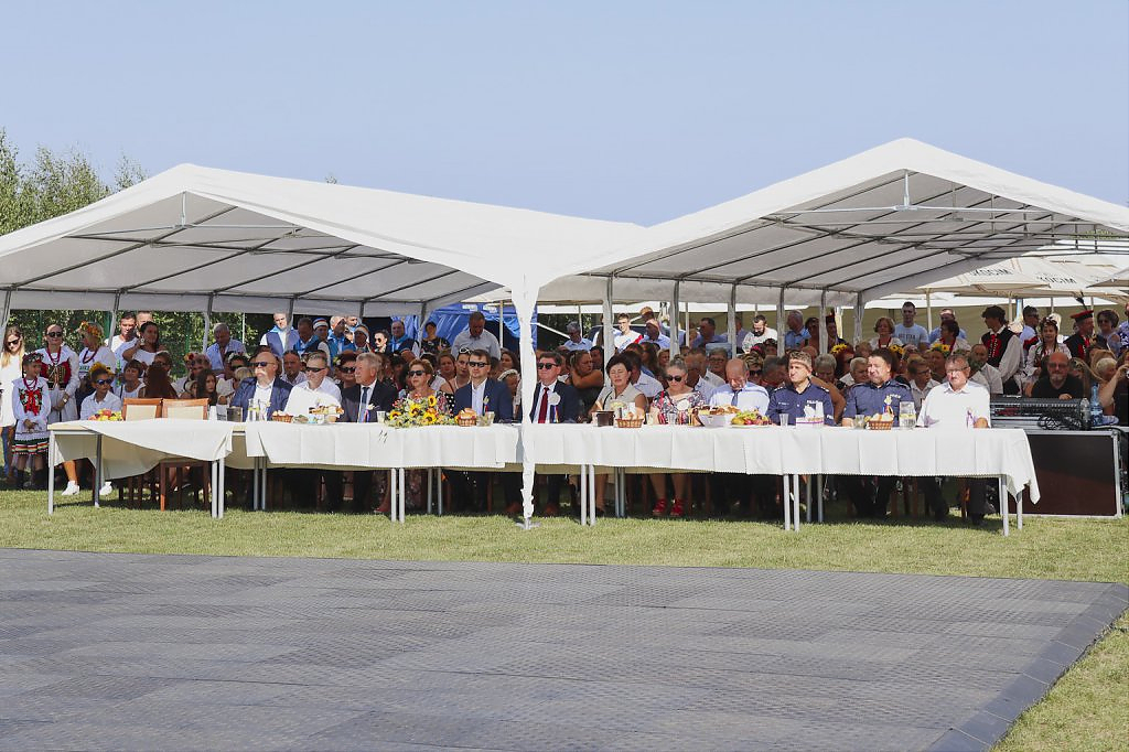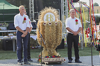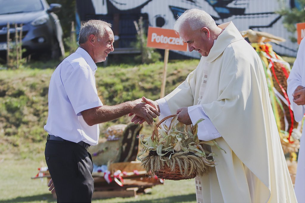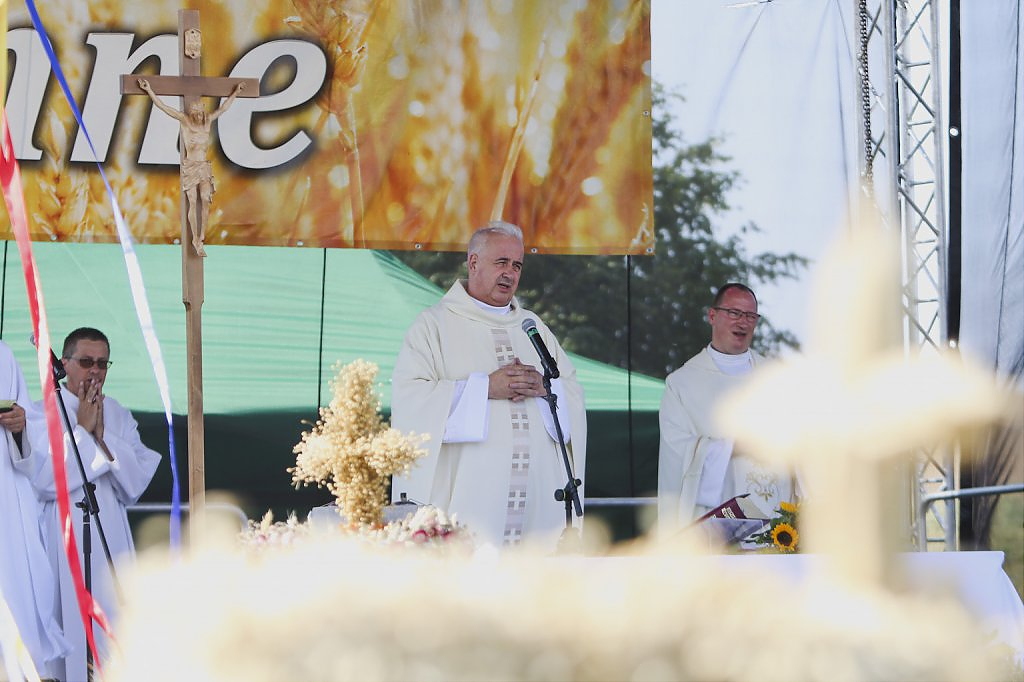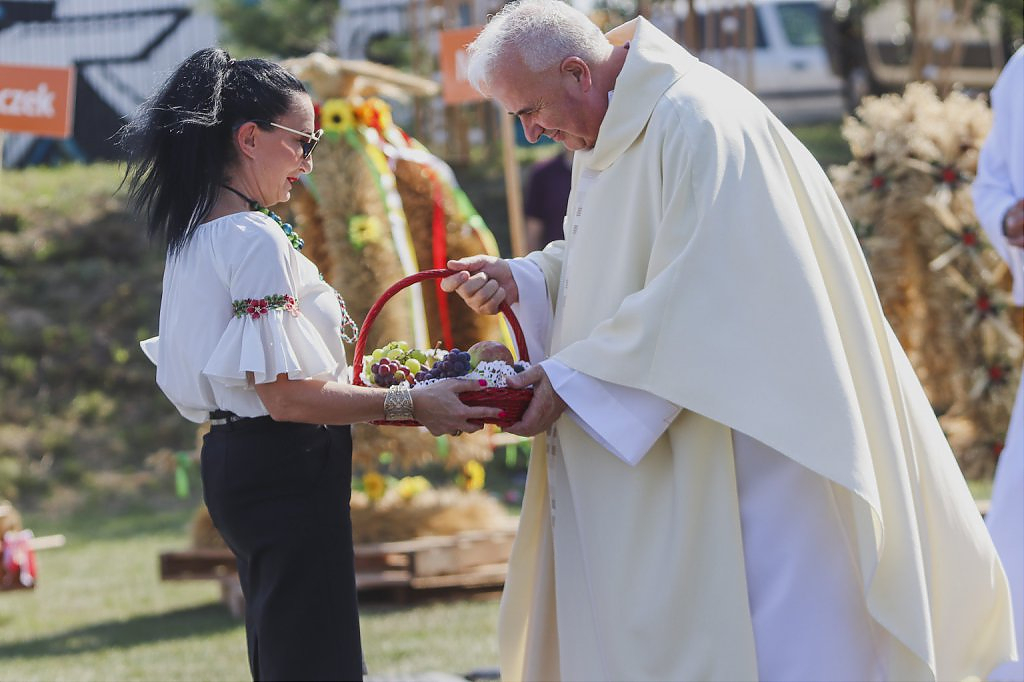 Tegoroczne uhonorowanie codziennej i ciężkiej pracy rolników odbyło się w największej miejscowości naszej gminy – Jaczowie. Miejscowości z wieloletnią historią i tradycją rolniczą z której wywodzili się najlepsi gospodarze. Tradycyjnie uroczystości mające religijny i ludowy charakter rozpoczęto Mszą Św. dziękczynną koncelebrowaną przez ks. dziekana Zbigniewa Walaszka, o. Łukasza Wójcika i Piotra Matusa. 12 rodzajów darów natury ofiarowały na ołtarz wszystkie sołectwa. Proboszcz poświęcił także piękne dożynkowe wieńce i pobłogosławił rolników.