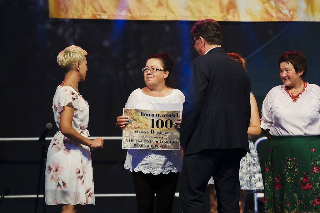 Oczekiwany przez wszystkich kabaret JURKI wywołał uśmiechy na twarzach już samym wyjściem na scenę i improwizacją podczas prób mikrofonów. Swoimi skeczami ukazującymi absurdy życia codziennego podbili serca i rozbawili wszystkich do łez. Rozstrzygnięcia doczekał się konkurs na Najpiękniejszą Dożynkową Dekorację Posesji. Nagrody dla zwycięzców na scenie wręczył wójt Lesław Golba i dyrektor GCK w Jerzmanowej Barbara Reszczyńska.