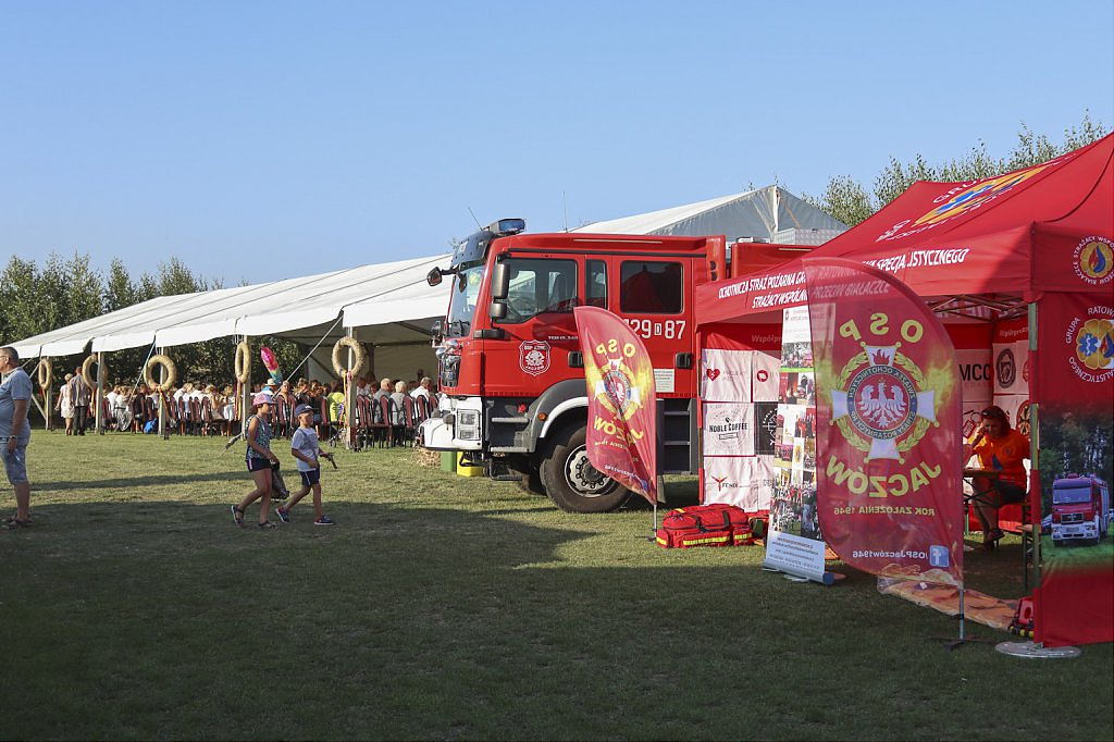 5) Strażaków udzielających wsparcia przy budowie miasteczka imprezowego i zabezpieczających imprezę.