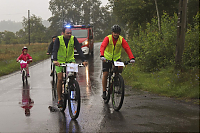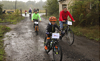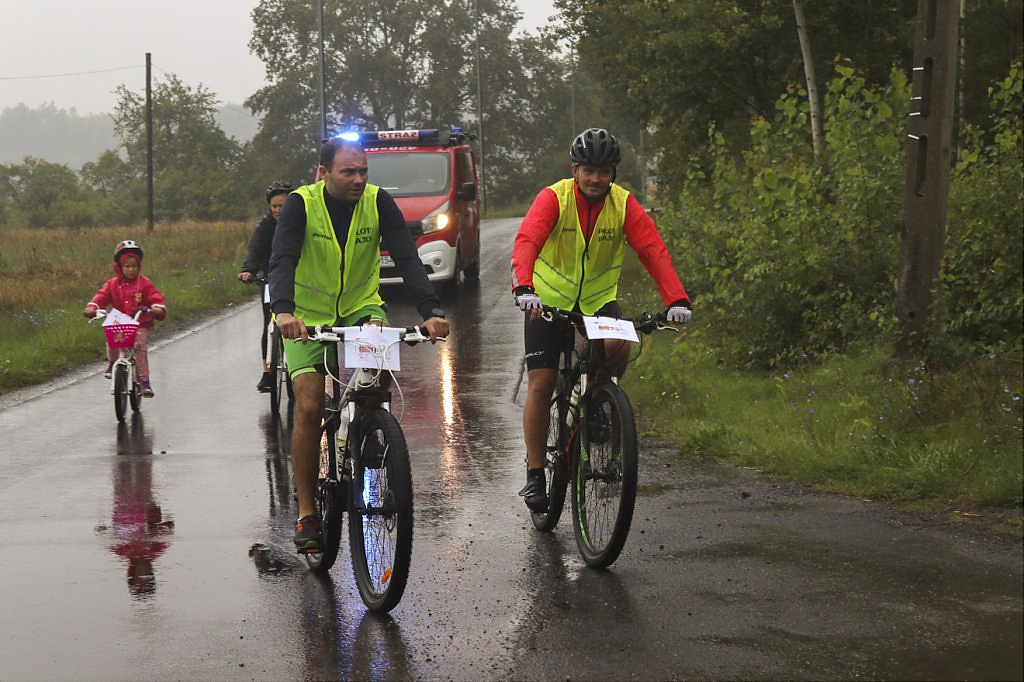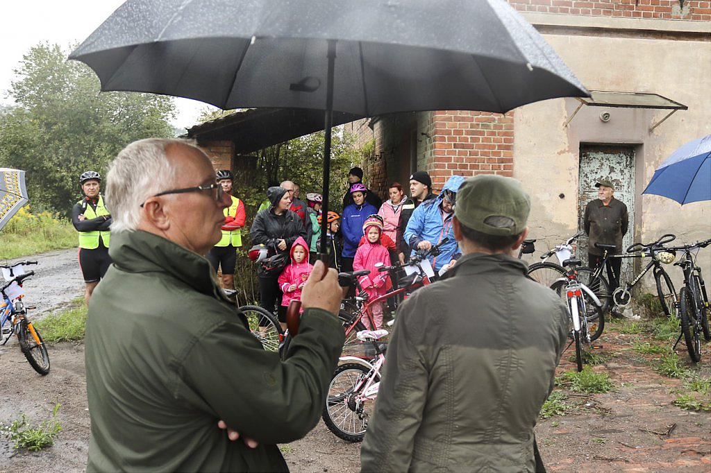 Po oficjalnym starcie dokonanym przez sołtys wsi Jerzmanowej Janetę Białek, rajd ruszył pod deszcz i wiatr w drogę po obiszowskich lasach. Przystankiem na trasie był plac cegielni w Bądzowie, gdzie w ramach projektu pn. „Bądzowski zlepek ceramicznych wspomnień” Antoni Bok – historyk i regionalista opowiadał o historii cegielni i Bądzowa. Po tej niezwykłej lekcji grupa rowerzystów eskortowana przez bądzowskich strażaków wyruszyła w dalszą część trasy.