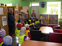 [więcej...]Cieszymy się, że Bibliotekę w Jerzmanowej tak chętnie odwiedzają przedszkolaki z Gminnego Przedszkola "Kraina Marzeń w Jerzmanowej. Dzisiaj (15 kwietnia 2016) mieliśmy przyjemność gościć grupę "Semrfów" wraz z opiekunami. Nasi najmłodsi czytelnicy zapoznali się z księgozbiorem, zasadami wypożyczania i poszanowania książek. Z zaciekawieniem słuchały opowiadania czytanego przez bibliotekarę. Bardzo dziękujemy za odwiedziny i zapraszamy ponownie.