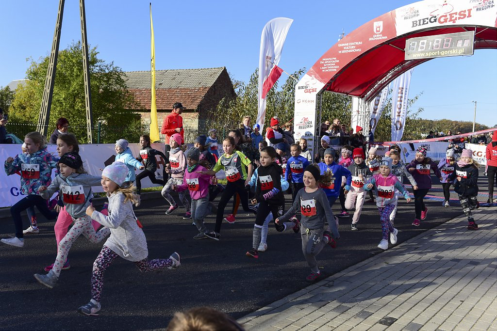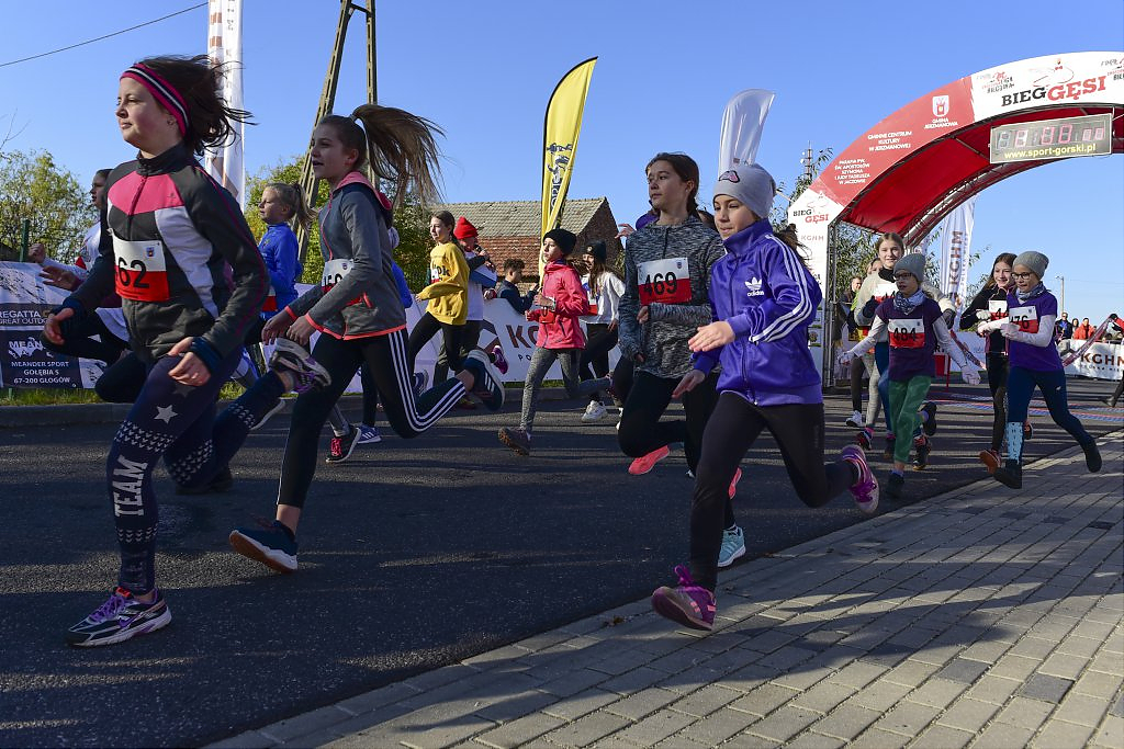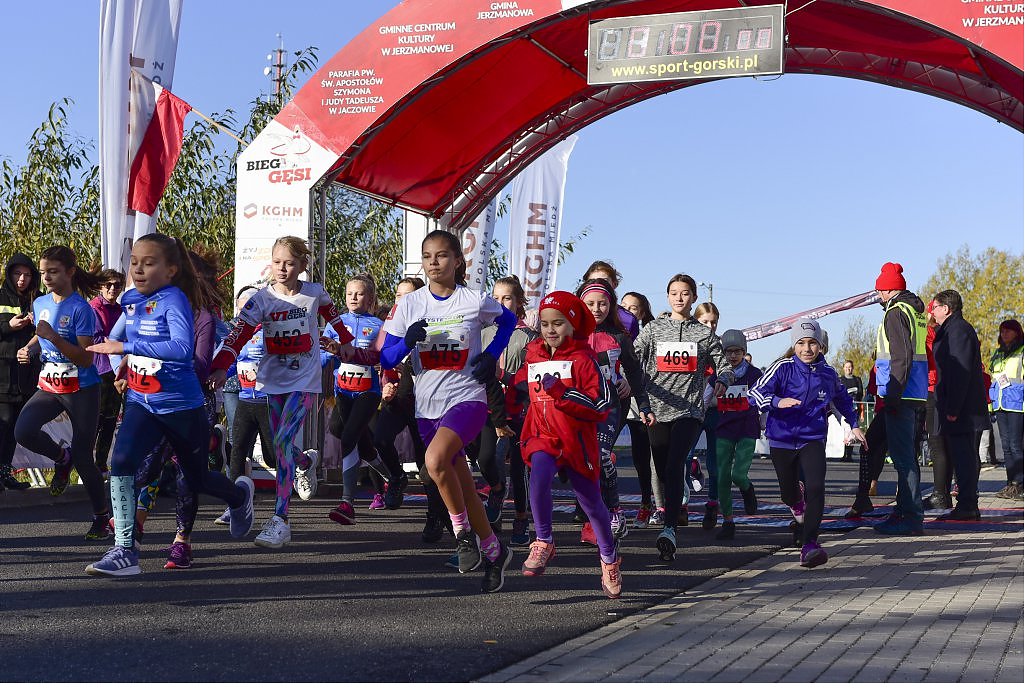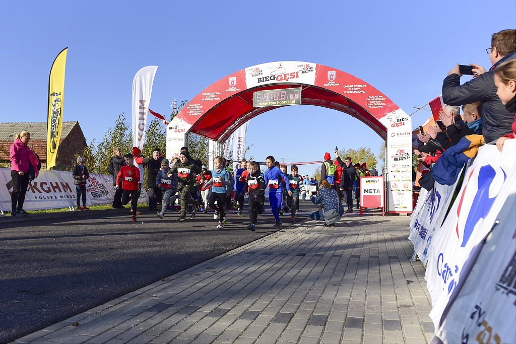 [więcej...]Organizowany już po raz ósmy w Gminie Jerzmanowa Bieg Gęsi z roku na rok zyskuje na popularności. Biorą w nim udział już nie tylko amatorzy biegania ale również zawodowi sportowcy. Nie tylko mieszkańcy gminy Jerzmanowa ale i miasta Głogowa, innych pobliskich miast jak oraz odległych miejscowości w Polsce. Tegoroczne konkurencje w odróżnieniu od poprzednich lat rozpoczęły się już od godzin porannych. Po uroczystym powitaniu o godz. 9:30 na starcie jako pierwsi pojawili się uczestnicy Nordic Walking. Godzinę później dopingowani przez rodziców w biegu przedszkolaków pobiegli najmłodsi. W trakcie wspólnych biegów dziewcząt i chłopców, osobnych kategorii roczników 2012-2010, 2009-2007 i 2006-2004 między zawodnikami pojawiła się już większa rywalizacja.