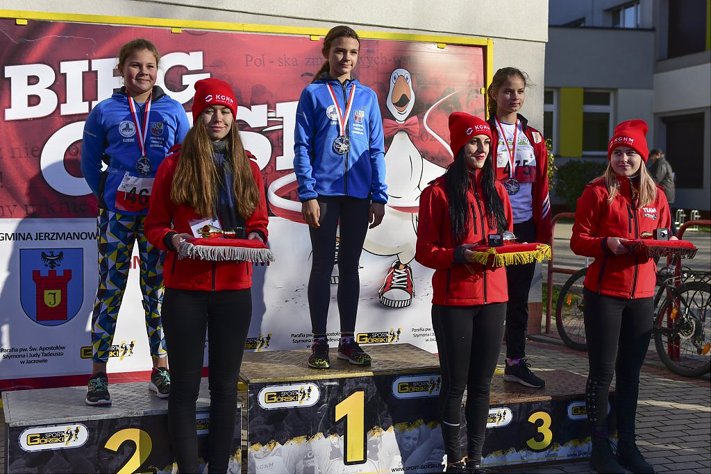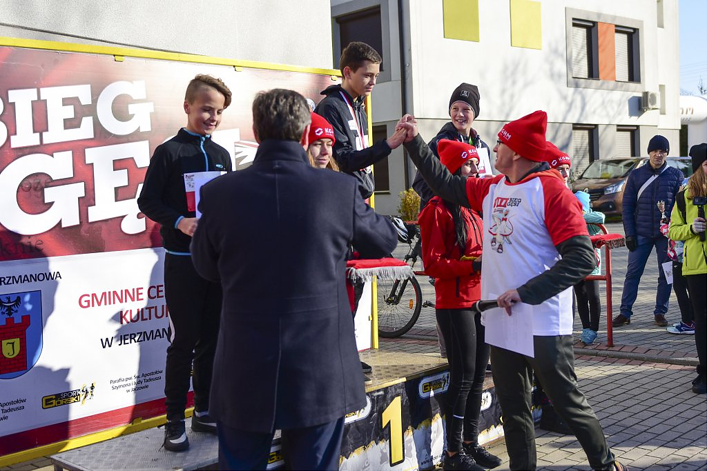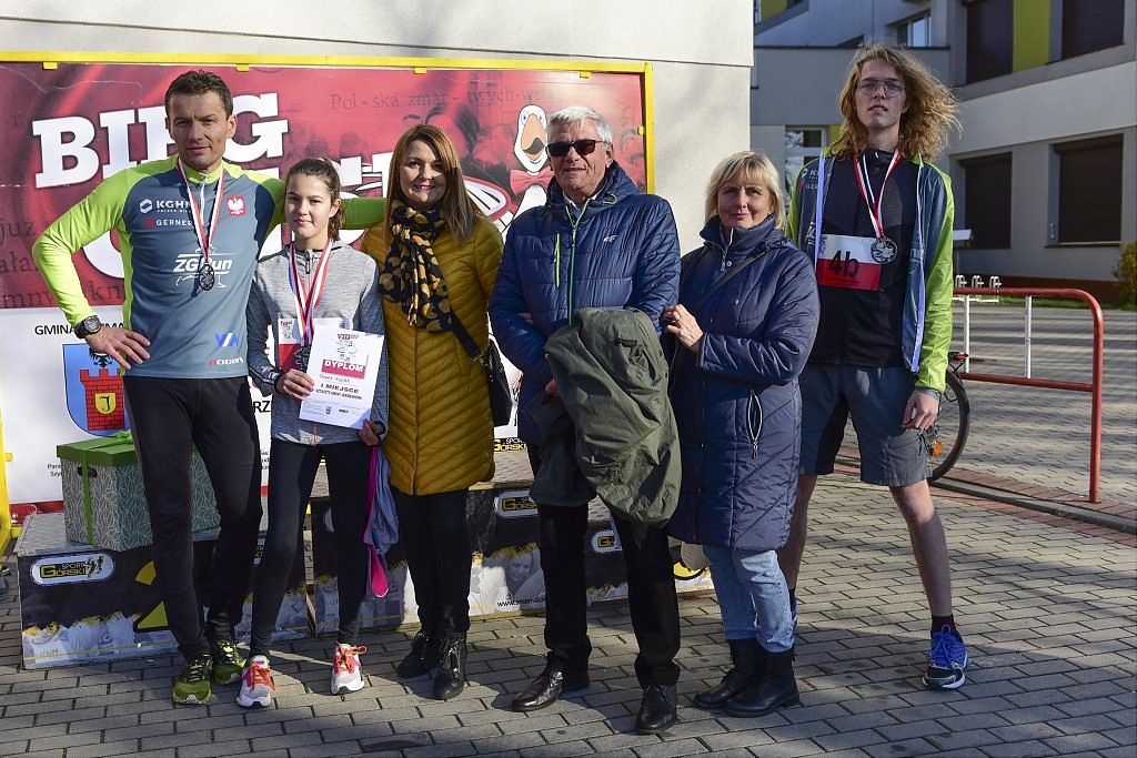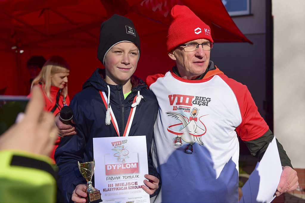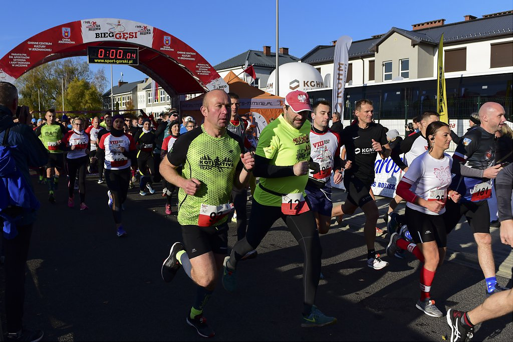 [więcej...]Organizowany już po raz ósmy w Gminie Jerzmanowa Bieg Gęsi z roku na rok zyskuje na popularności. Biorą w nim udział już nie tylko amatorzy biegania ale również zawodowi sportowcy. Nie tylko mieszkańcy gminy Jerzmanowa ale i miasta Głogowa, innych pobliskich miast jak oraz odległych miejscowości w Polsce. Tegoroczne konkurencje w odróżnieniu od poprzednich lat rozpoczęły się już od godzin porannych. Po uroczystym powitaniu o godz. 9:30 na starcie jako pierwsi pojawili się uczestnicy Nordic Walking. Godzinę później dopingowani przez rodziców w biegu przedszkolaków pobiegli najmłodsi. W trakcie wspólnych biegów dziewcząt i chłopców, osobnych kategorii roczników 2012-2010, 2009-2007 i 2006-2004 między zawodnikami pojawiła się już większa rywalizacja.