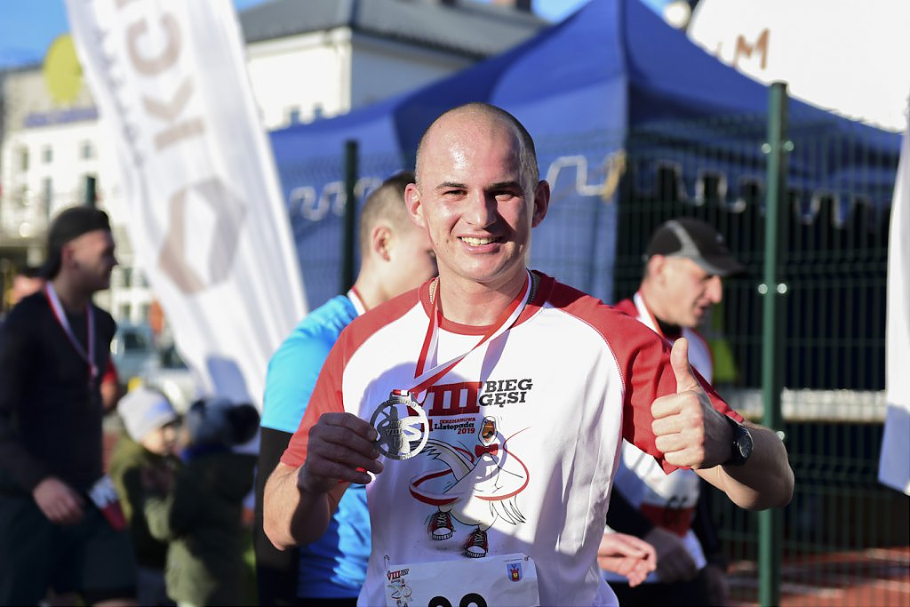 Poranne biegi zakończyła kategoria Sztafet oraz dekoracja i wręczenie nagród dla zwycięzców. Wraz z godziną 13:30 ponad 200 zawodników wystartowało w 8,5 km. trasę biegu OPEN. Zwycięzca pokonał ten dystans w zaledwie 27min i 35s. VIII Bieg Gęsi był też ostatnim biegiem tegorocznej edycji Crossowej Ligi Biegowej, w skład której wchodziło 7 biegów organizowanych przez Jerzego Górskiego w naszym regionie i w której nagrodą główną był tygodniowy pobyt na Teneryfie dla 2 osób. Na każdego kto dotarł na metę czekały pamiątkowe medale, a na zwycięzców pieczone gęsi wręczone przez wójta Lesława Golbę. Po raz pierwszy w historii 8. Biegu Gęsi pieczone gęsi trafiły do zwycięzców odrębnej kategorii adresowanej mieszkańcom gminy Jerzmanowa.